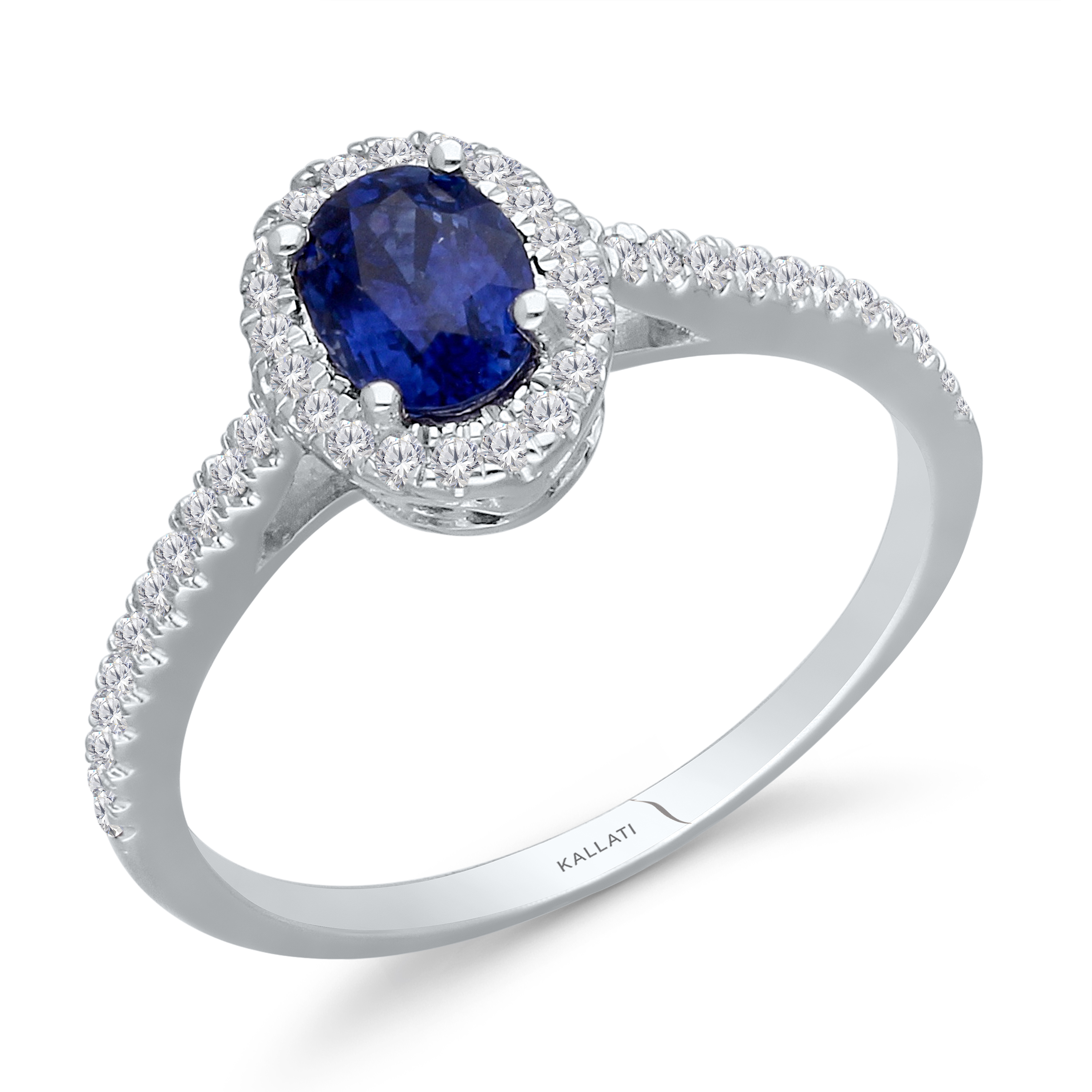 14K WHITE GOLD CEYLON SAPPHIRE & WHITE