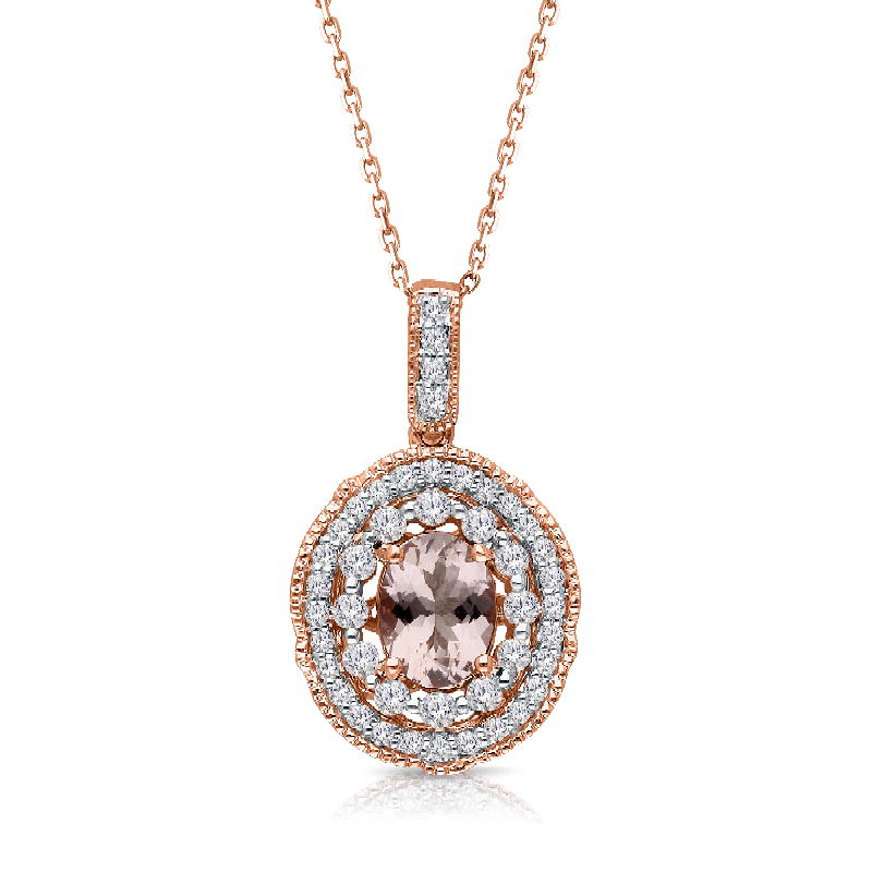 14K ROSE GOLD MORGANITE & WHITE DIAMOND