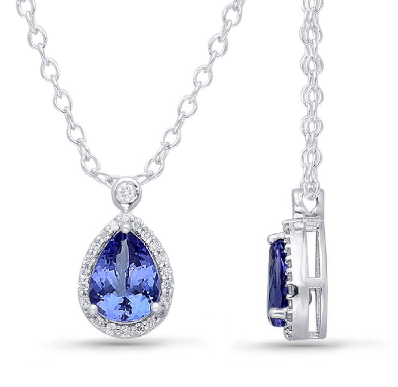 14K WHITE GOLD TANZANITE & WHITE DIAMOND FASHION NECKLACE