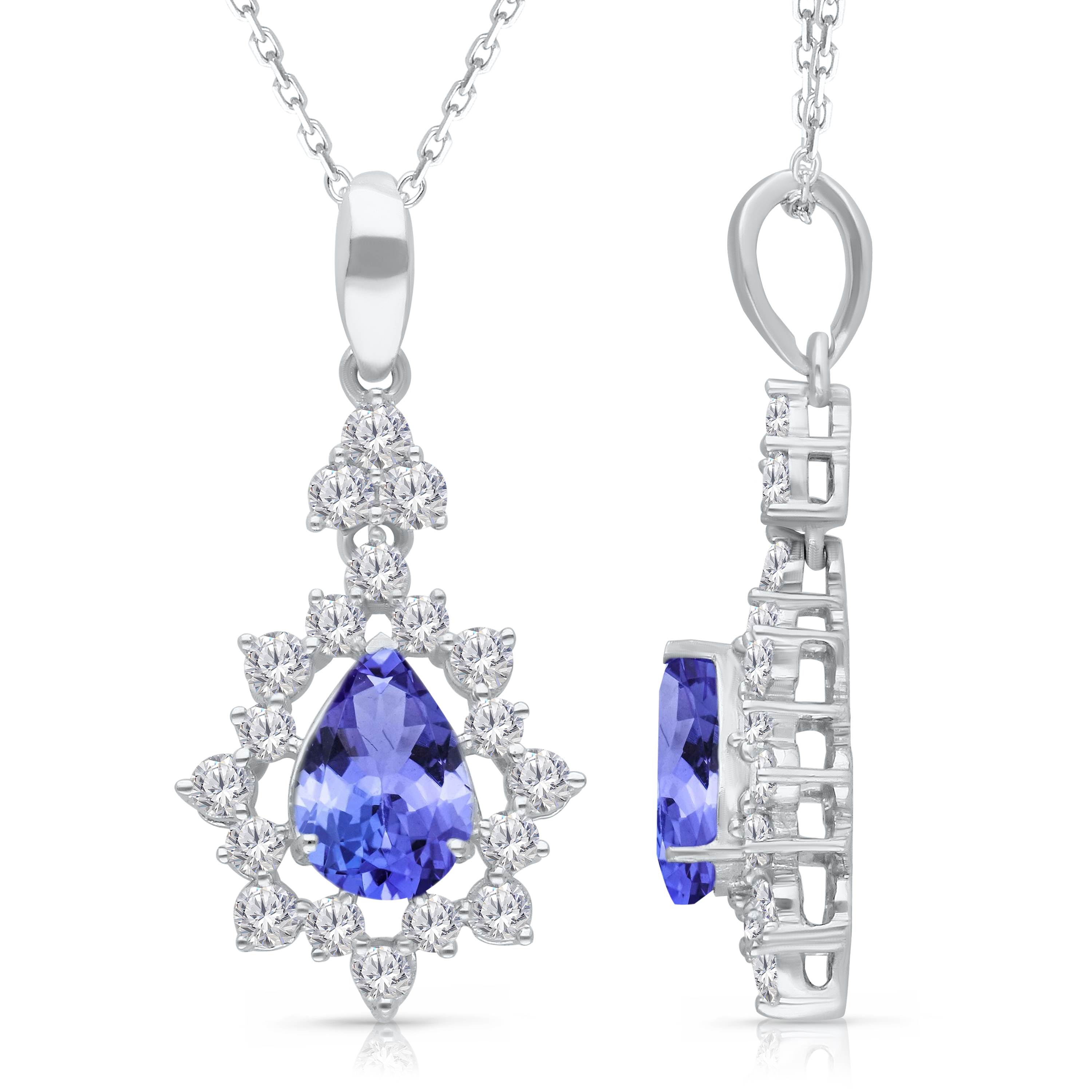 14 K WHITE GOLD TANZANITE WITH WHITE DIAMOND