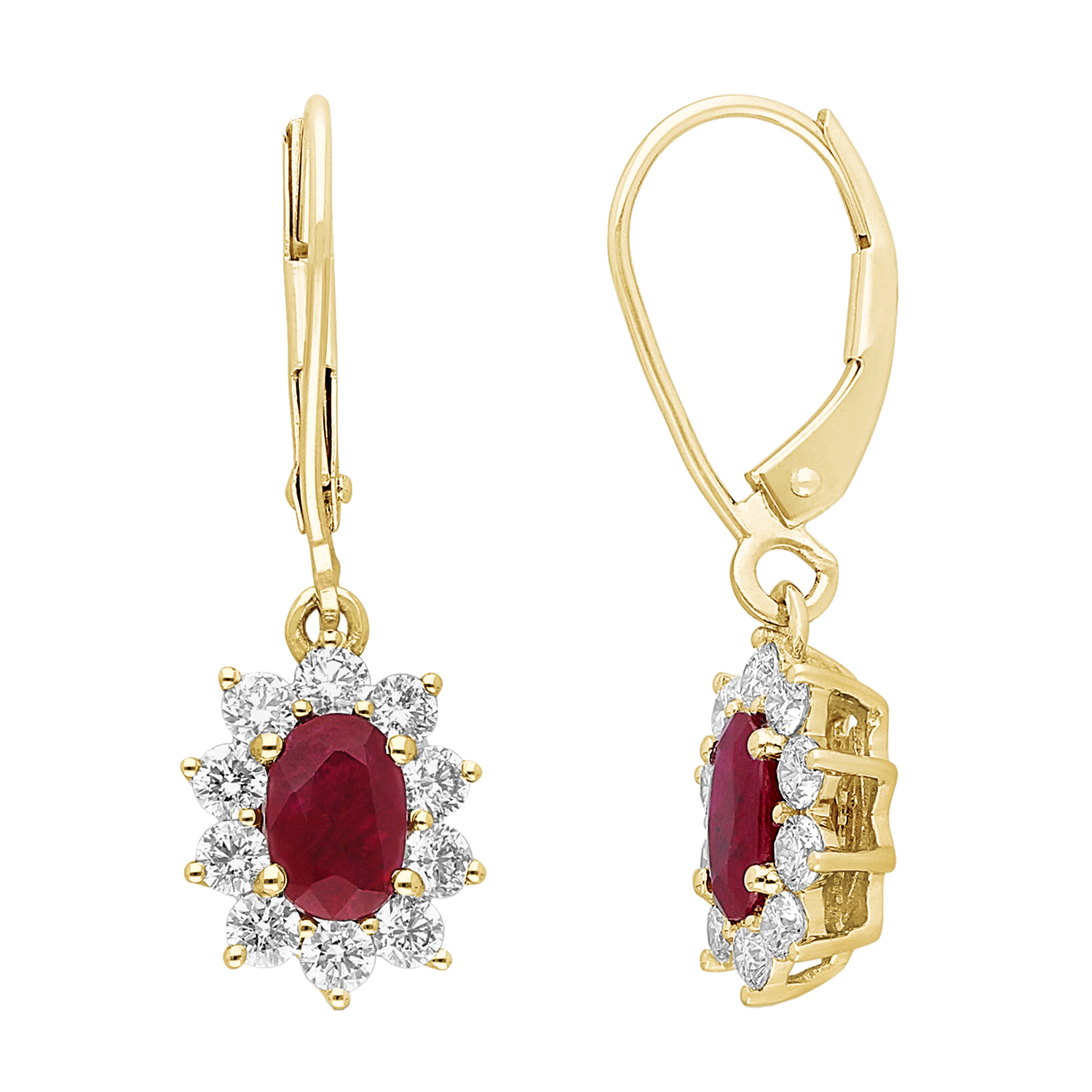 14K YELLOW GOLD RUBY & WHITE DIA EARRING