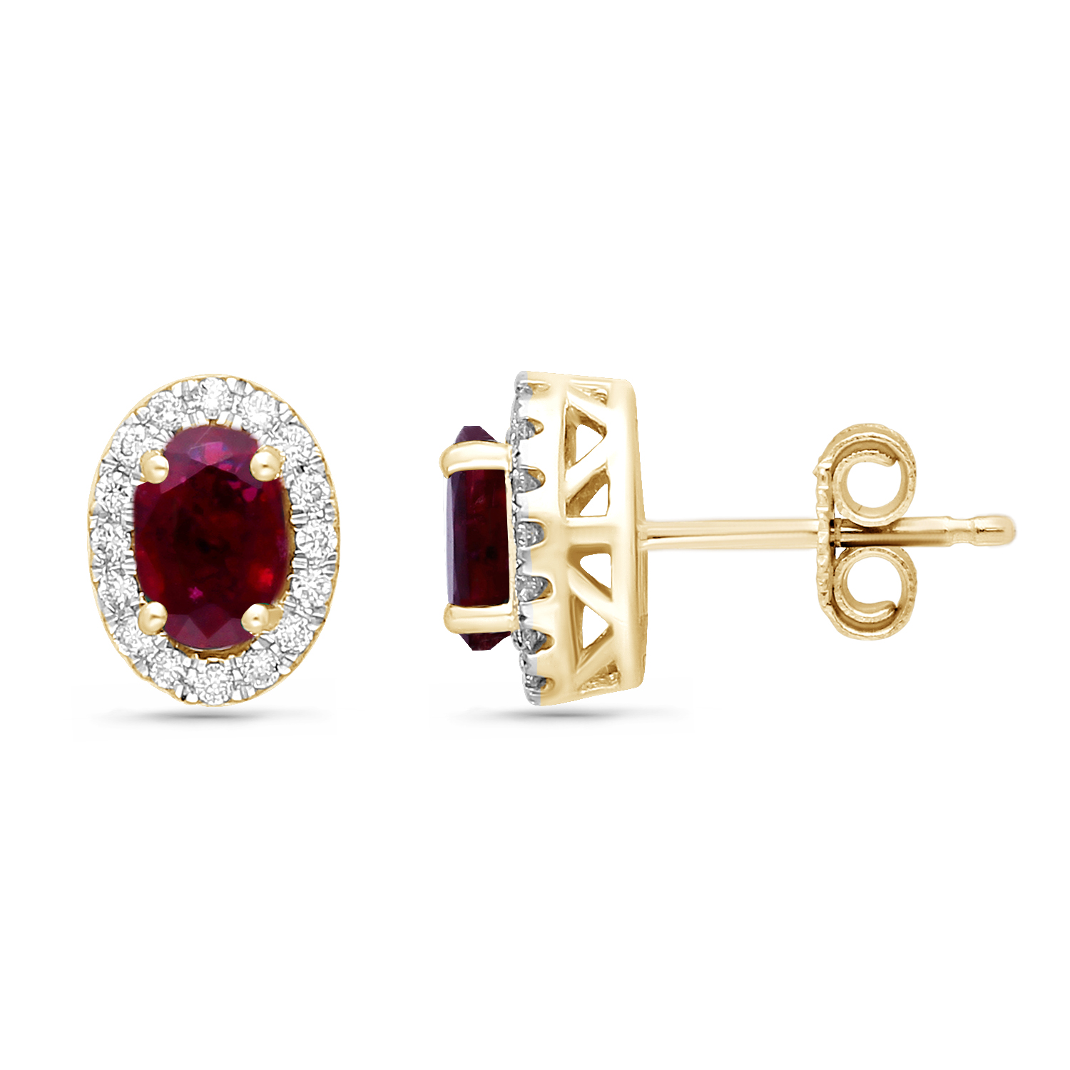14K YELLOW GOLD RUBY WHITE DIAMOND EARRI