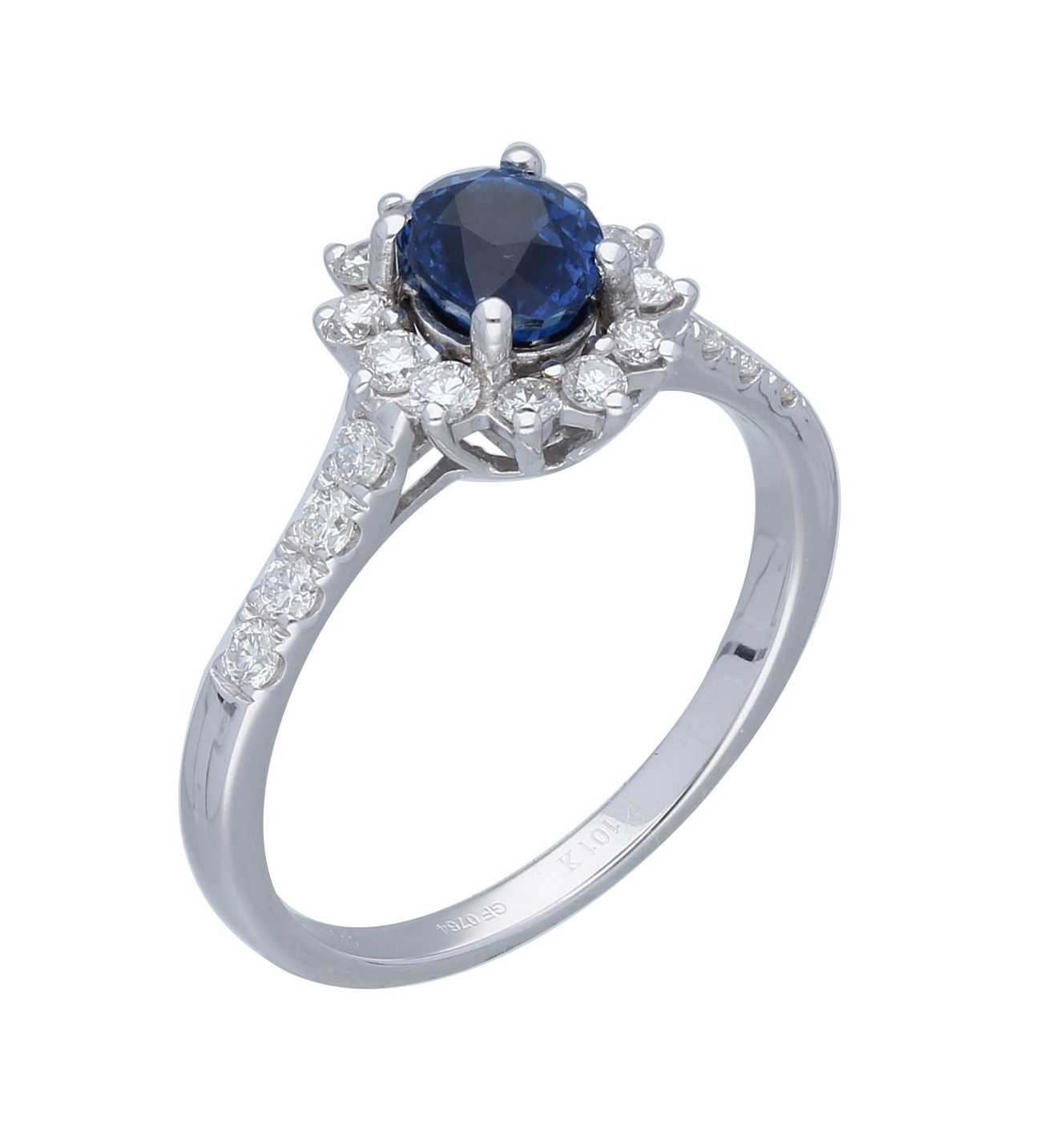 14K WHITE GOLD SI GIA SAPPHIRE DIAMOND R