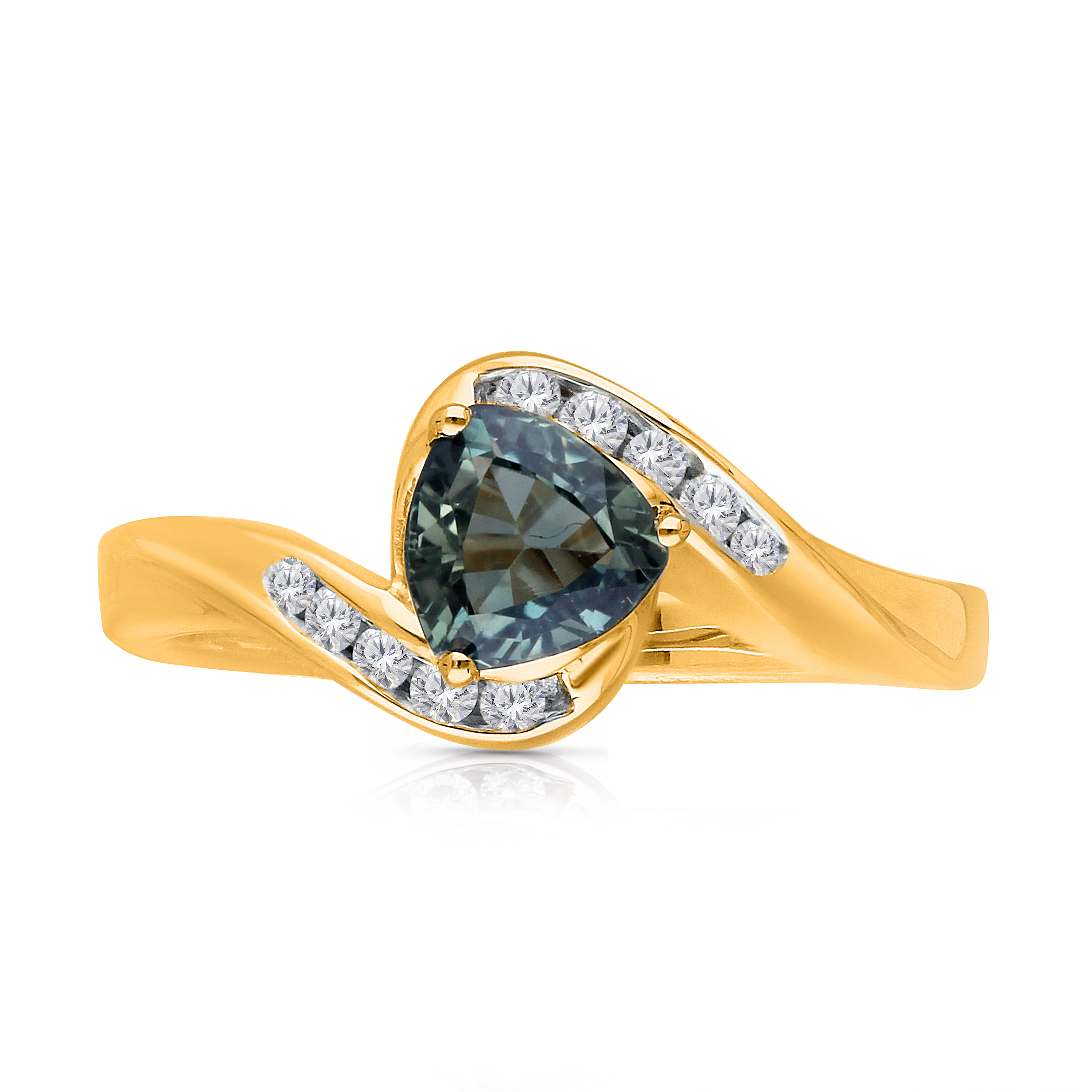 14K YELLOW GOLD MULTI SAPPHIRE & WHITE D