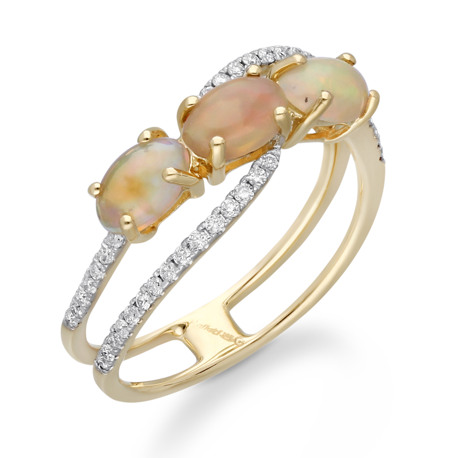 14K YELLOW GOLD OPAL & WHITE DIAMOND FASHION RING
