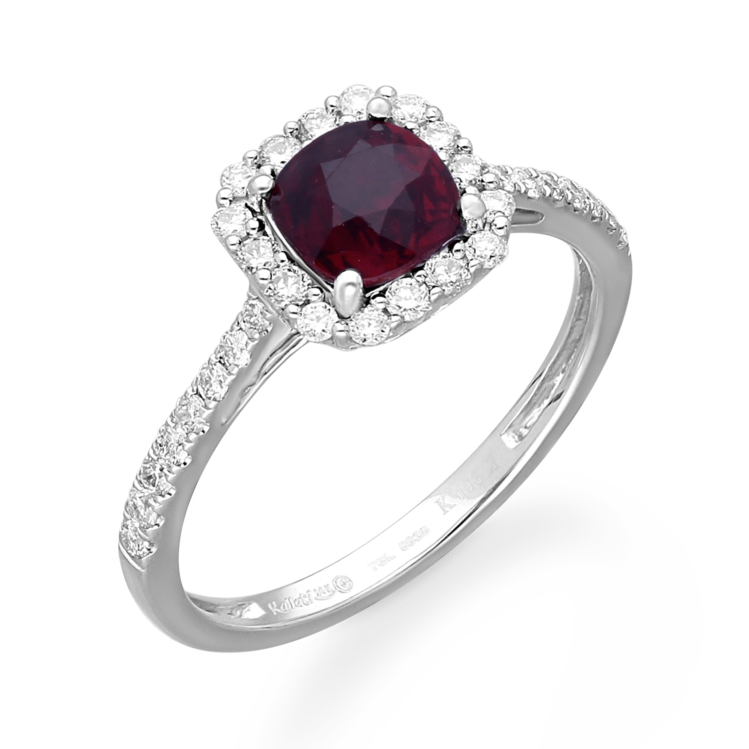 14K WHITE GOLD GIA RUBY & WHITE DIAMOND