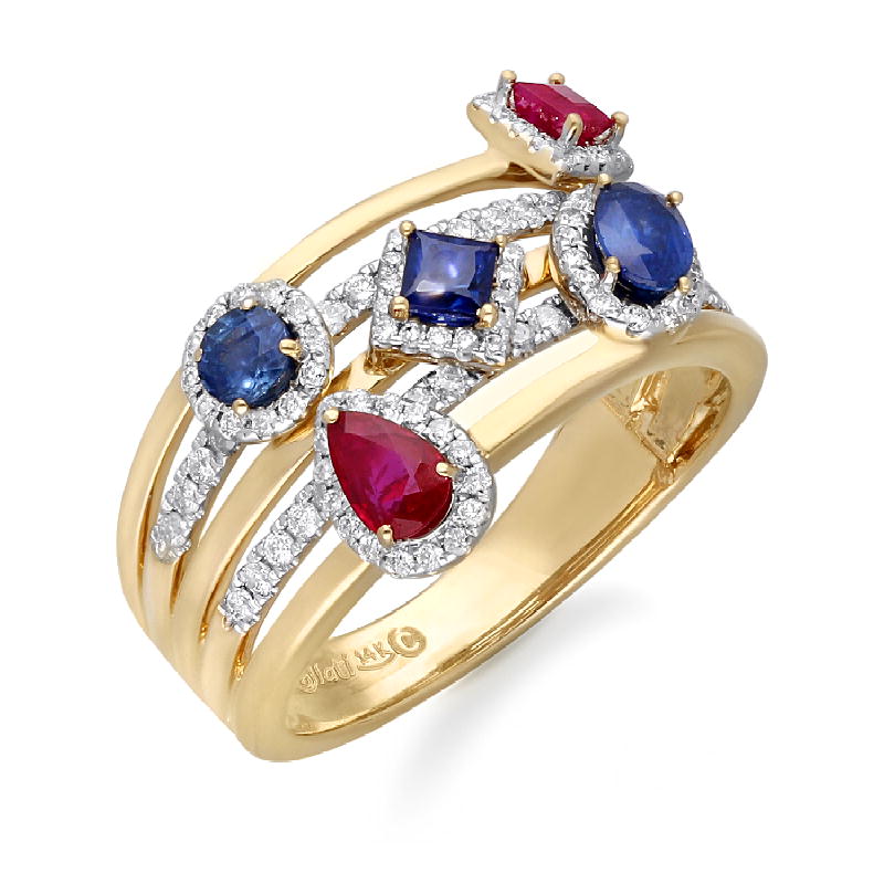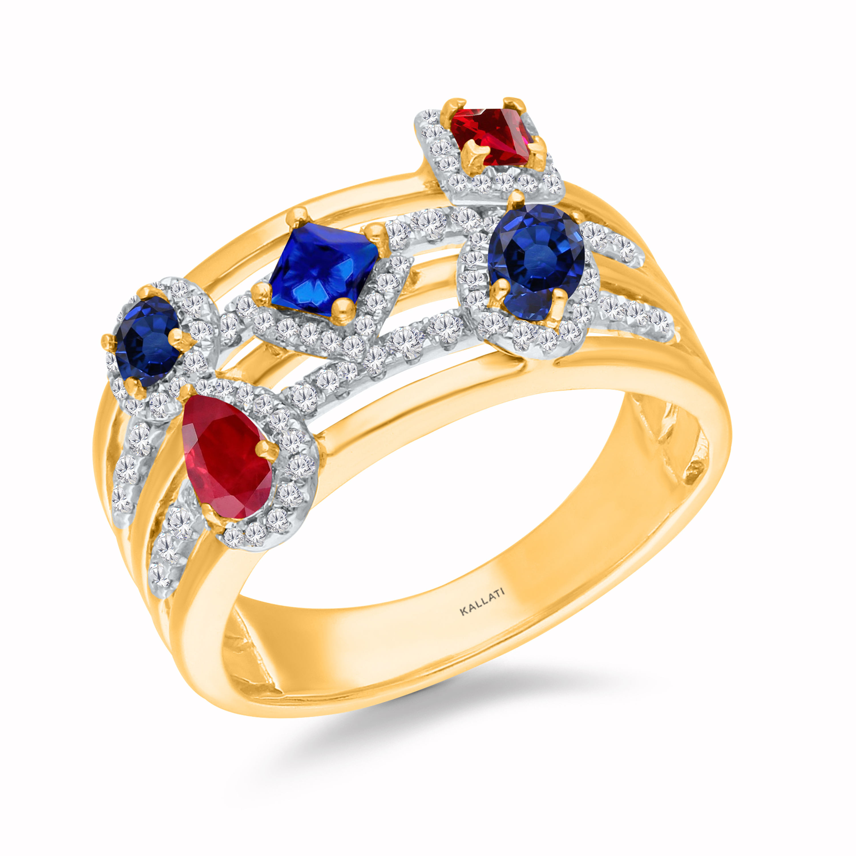 YELLOW GOLD RUBY; SAPPHIRE DIAMOND RING