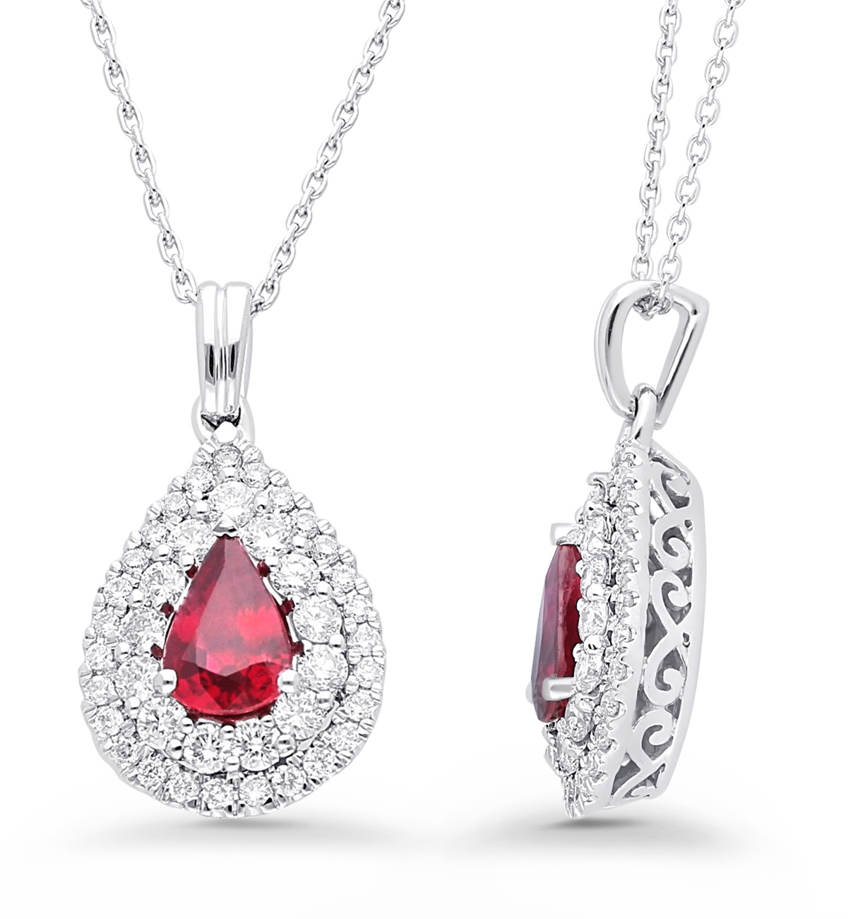 14K WHITE GOLD SI GIA RUBY DIAMOND PENDA