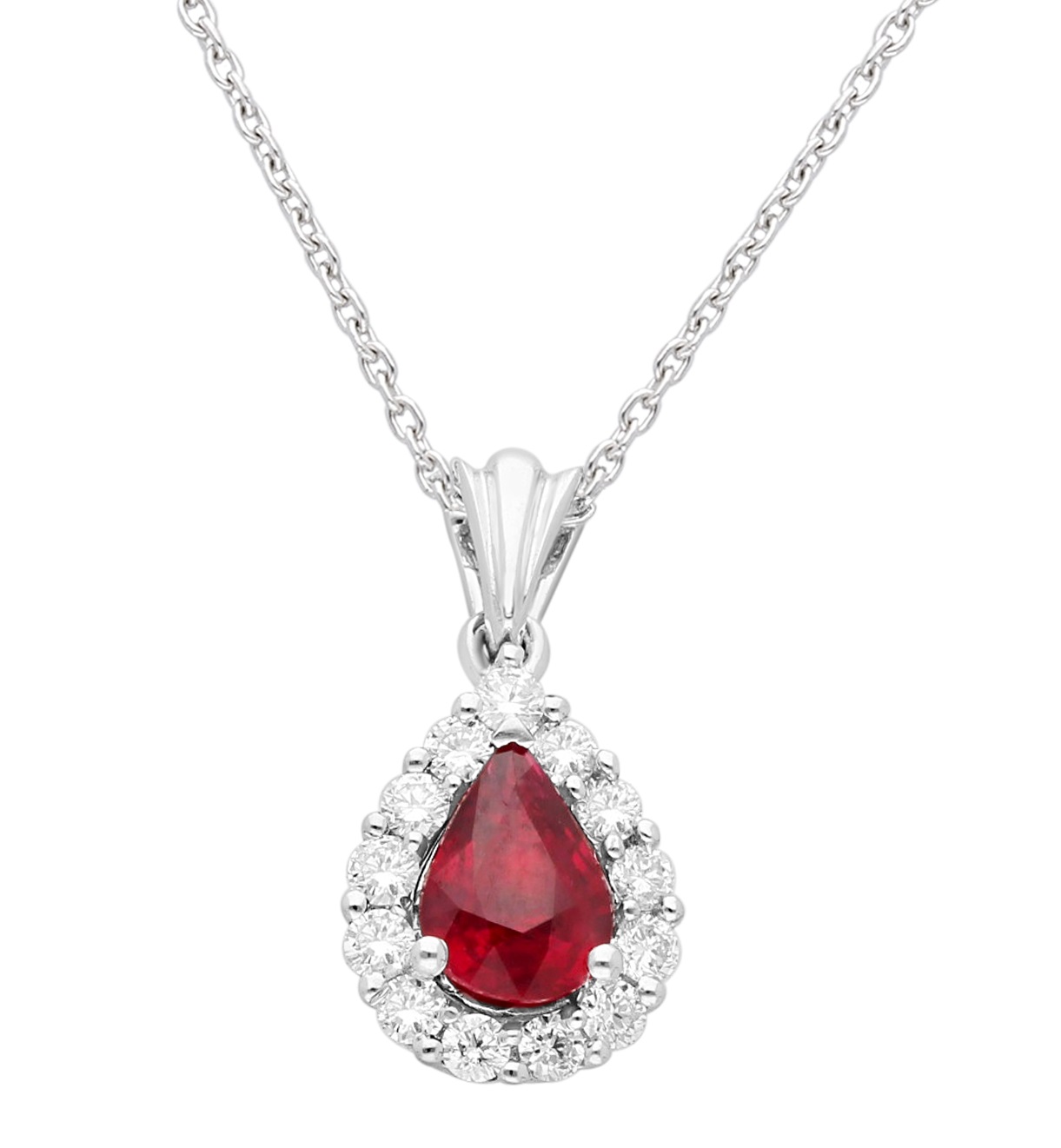 14K WHITE GOLD SI GIA RUBY DIAMOND PENDA