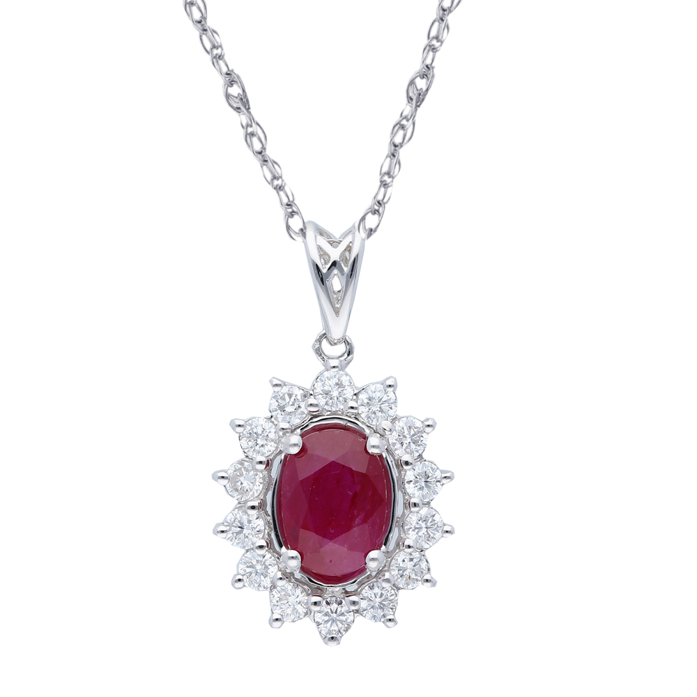 WHITE GOLD OVAL RUBY DIAMOND PENDANT