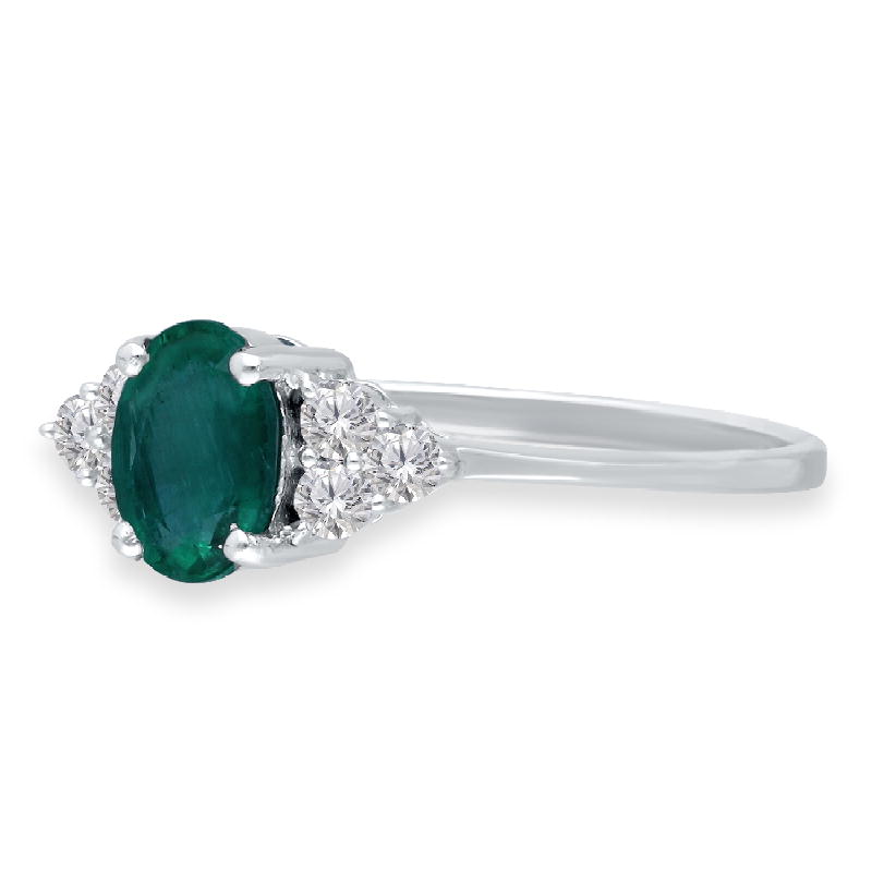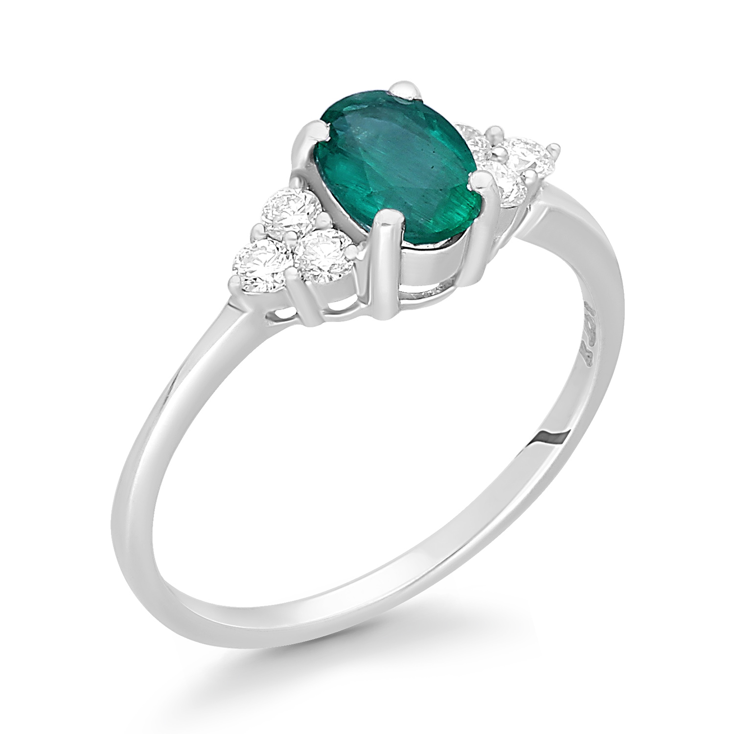 14K WHITE GOLD EMERALD & WHITE DIAMOND R