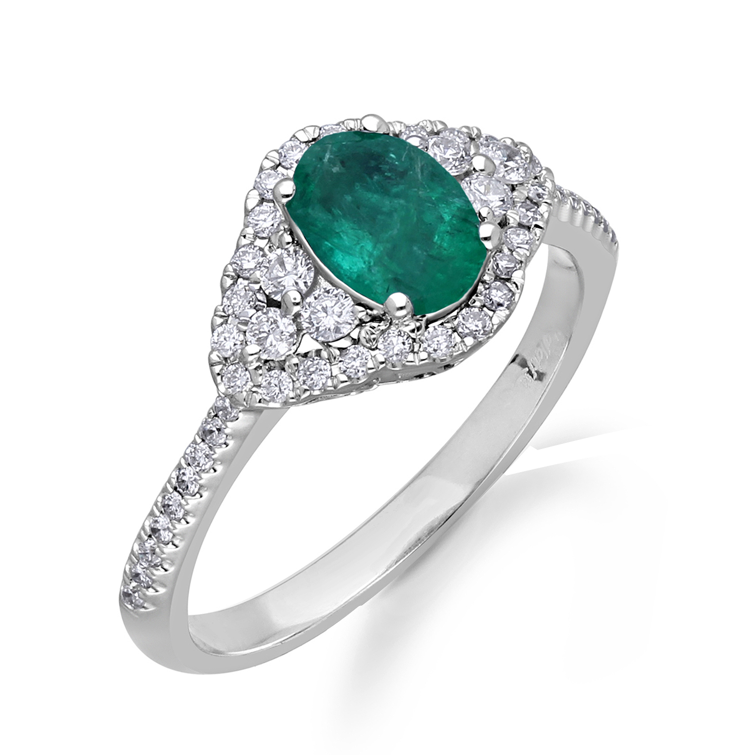 14K WHITE GOLD EMERALD & WHITE DIAMON