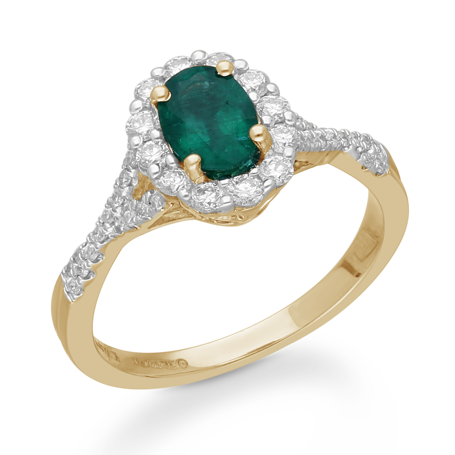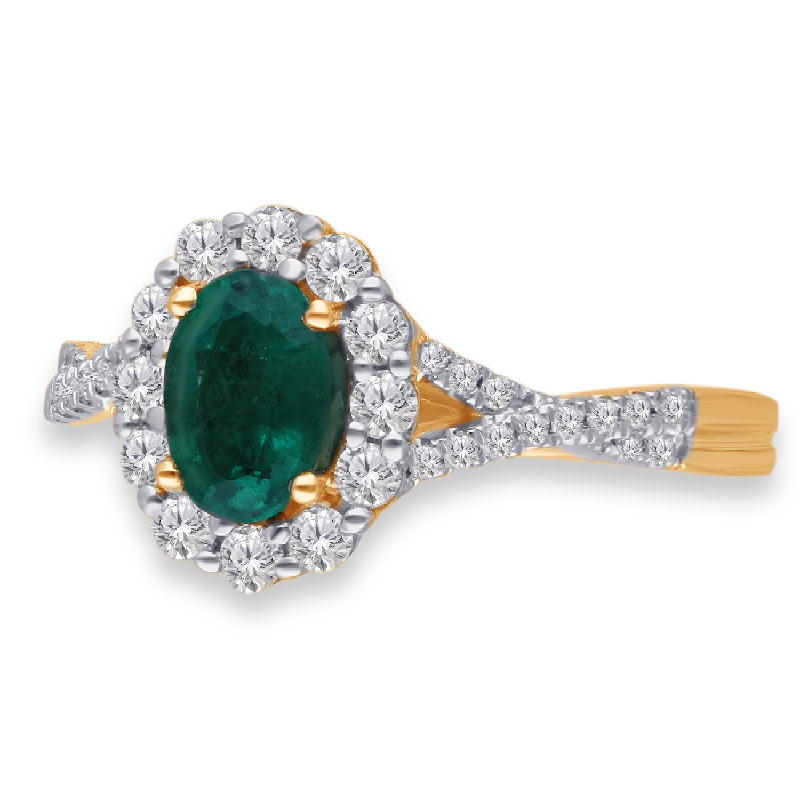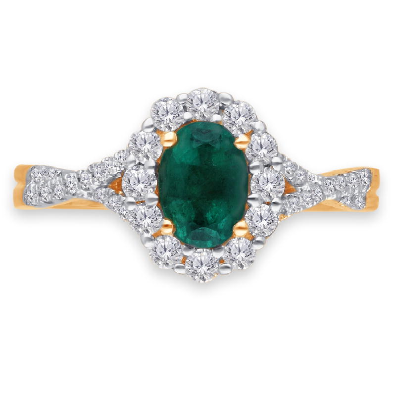 14K YELLOW GOLD EMERALD & WHITE DIAMOND