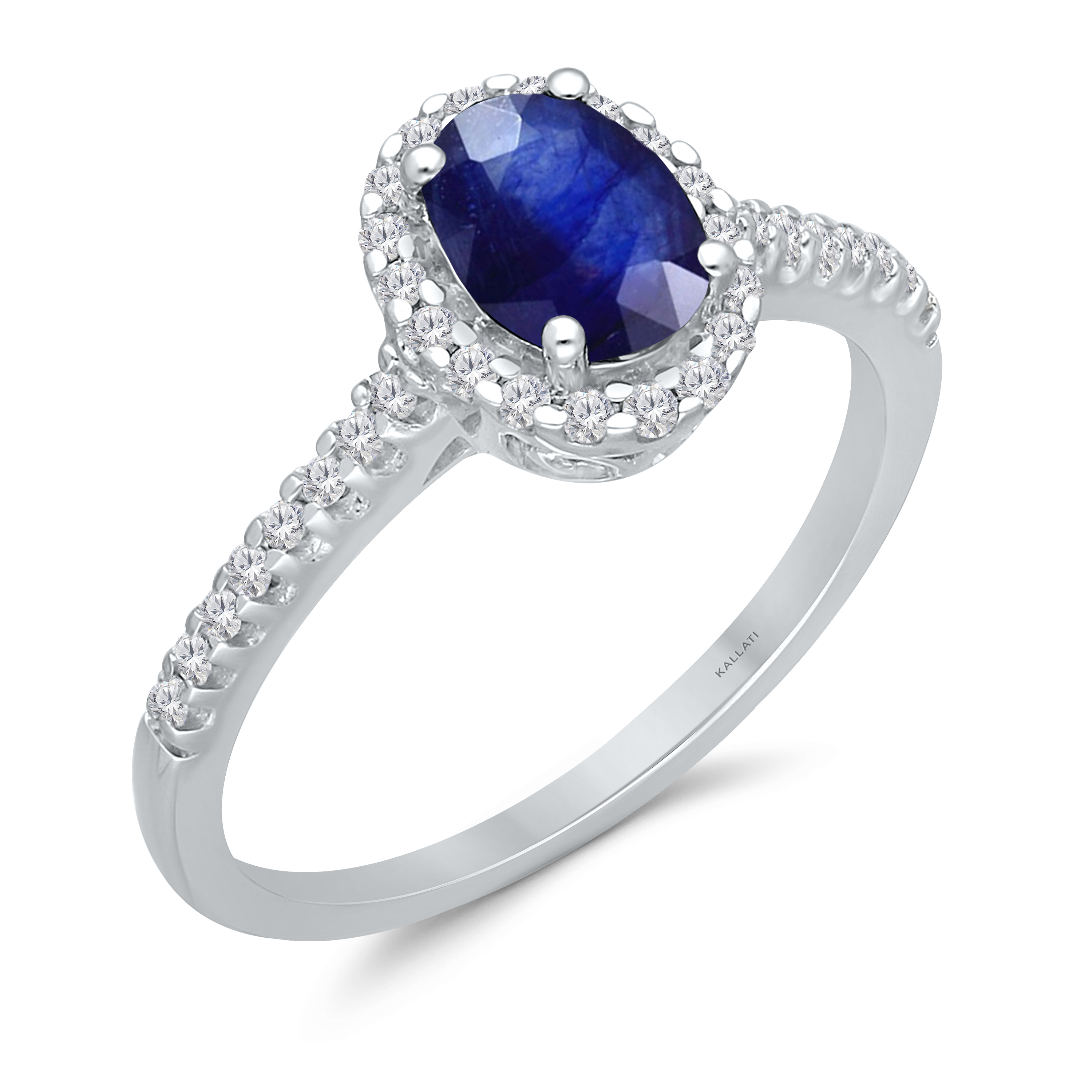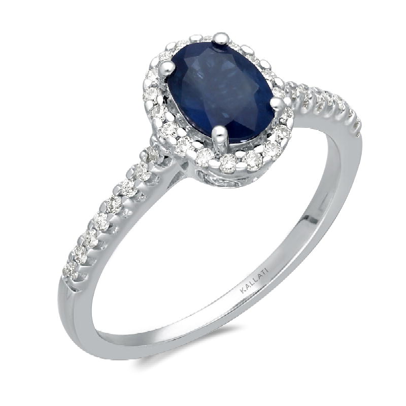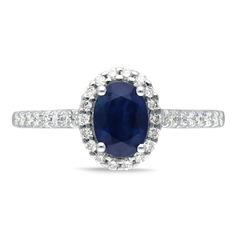 14K WHITE GOLD SAPPHIRE & WHTE DIAMOND FASHION RING