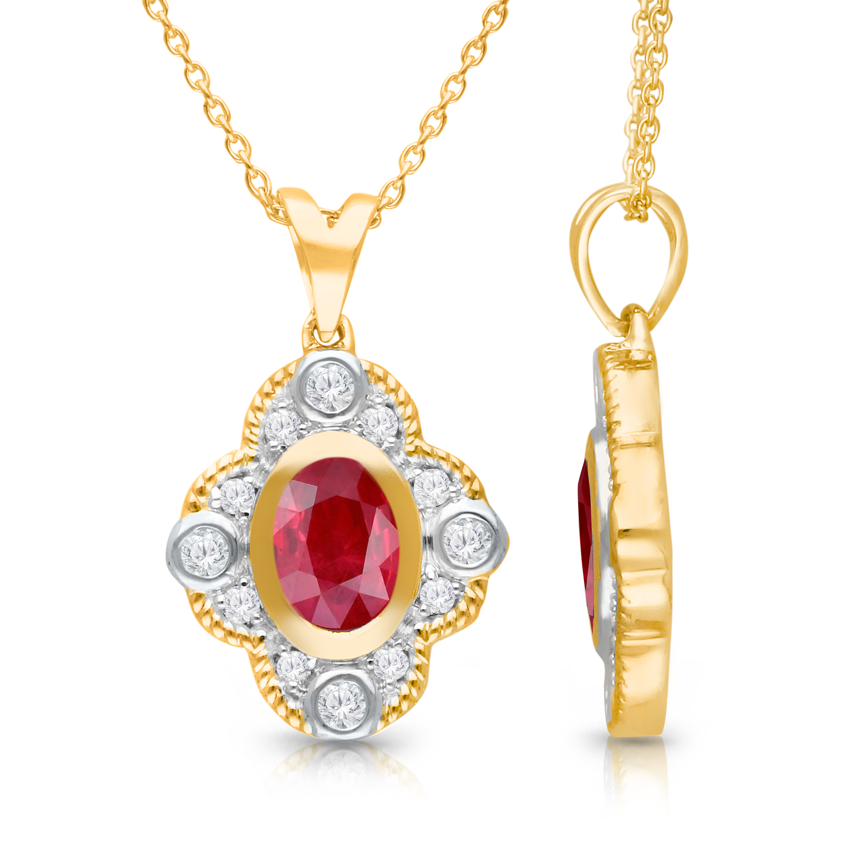 14K YELLOW GOLD RUBY WITH WHITE DIAMOND FASHION PENDANT