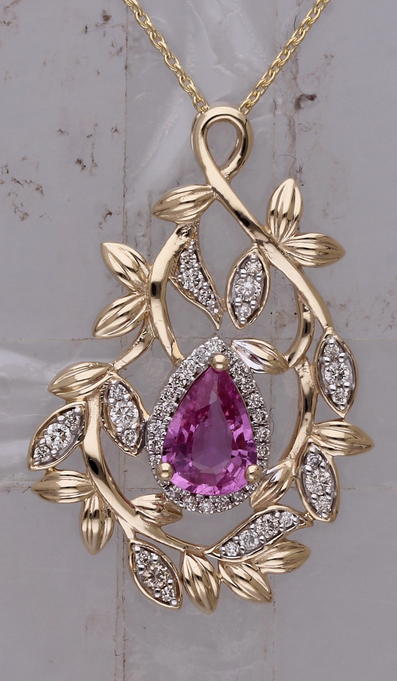 14K YELLOW GOLD MULTI SAPPHIRE WITH WHITE DIAMOND FASHION PENDANT