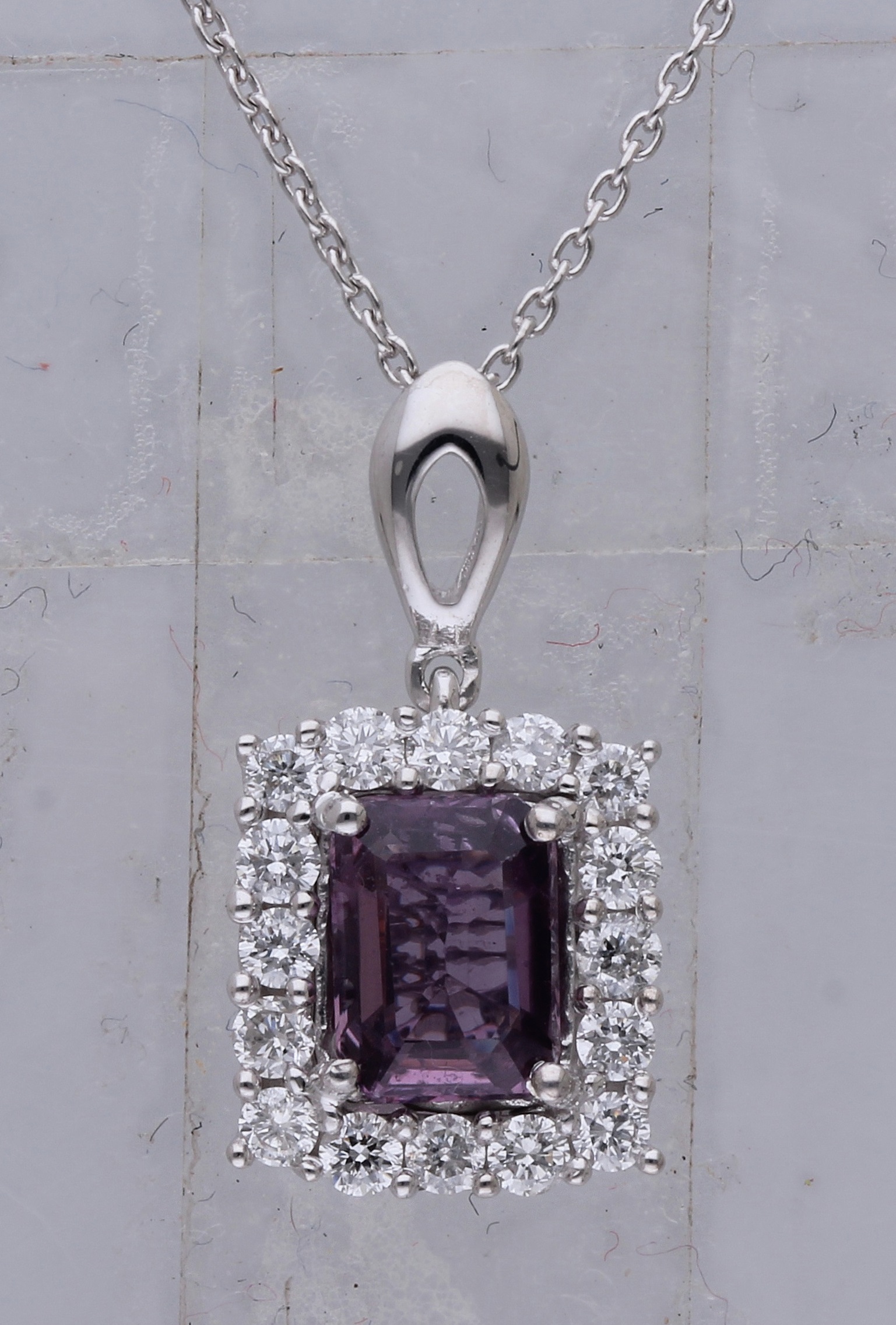 14K WHITE GOLD MULTI SAPPHIRE & WHITE DIAMOND FASHION PENDANT