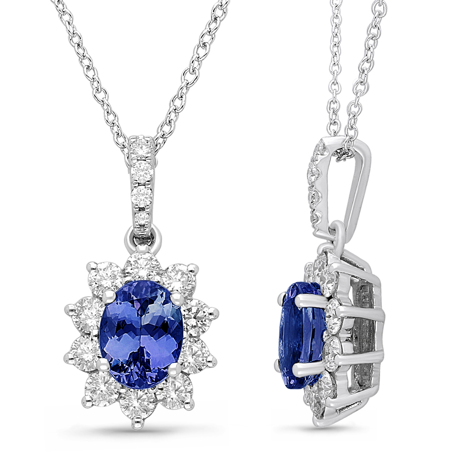 14K WHITE GOLD SAPPHIRE & WHITE DIAMOND FASHION PENDANT