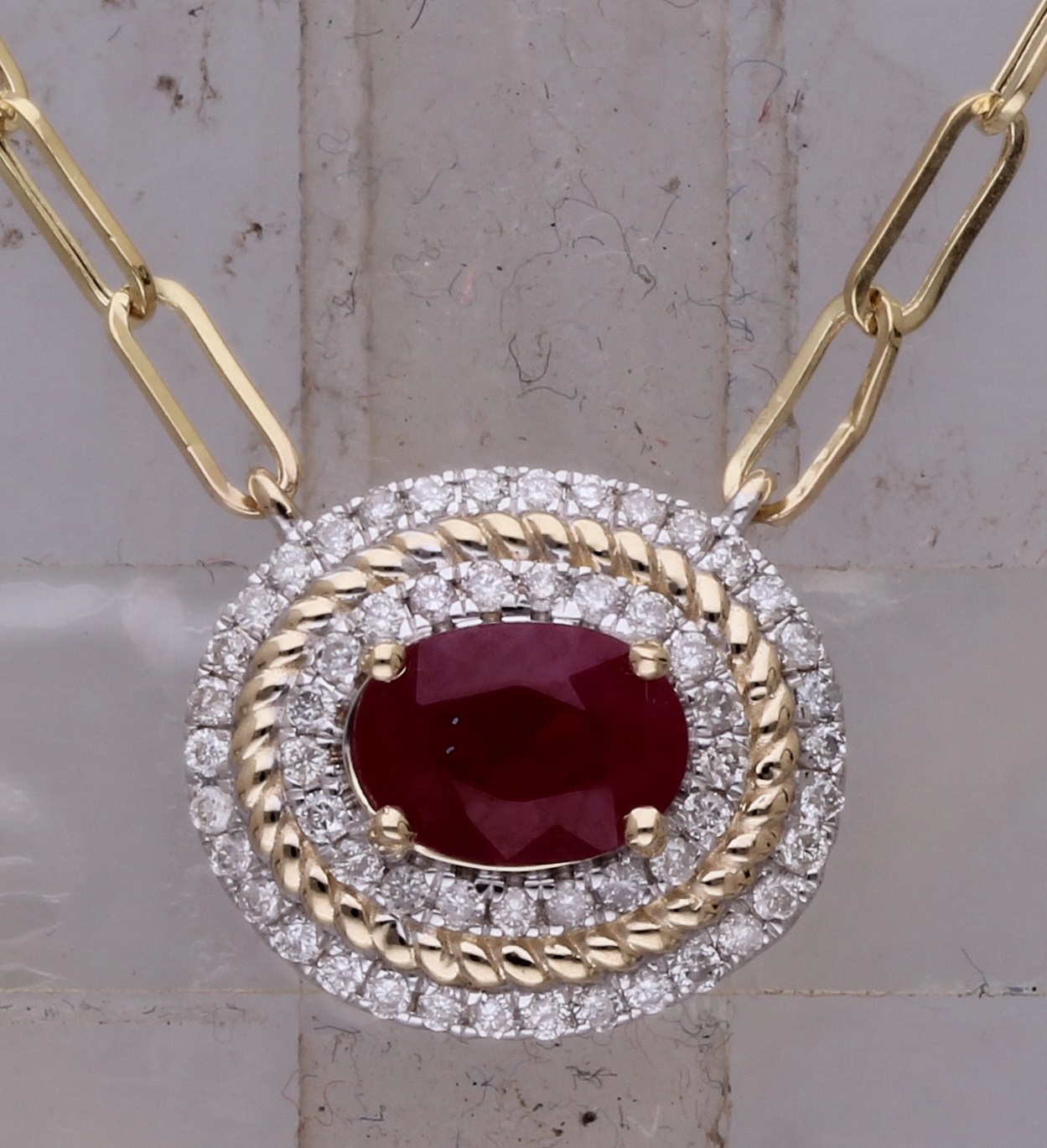 14K YELLOW GOLD SAPPHIRE WITH WHITE DIAMOND FASHION NECKLACE