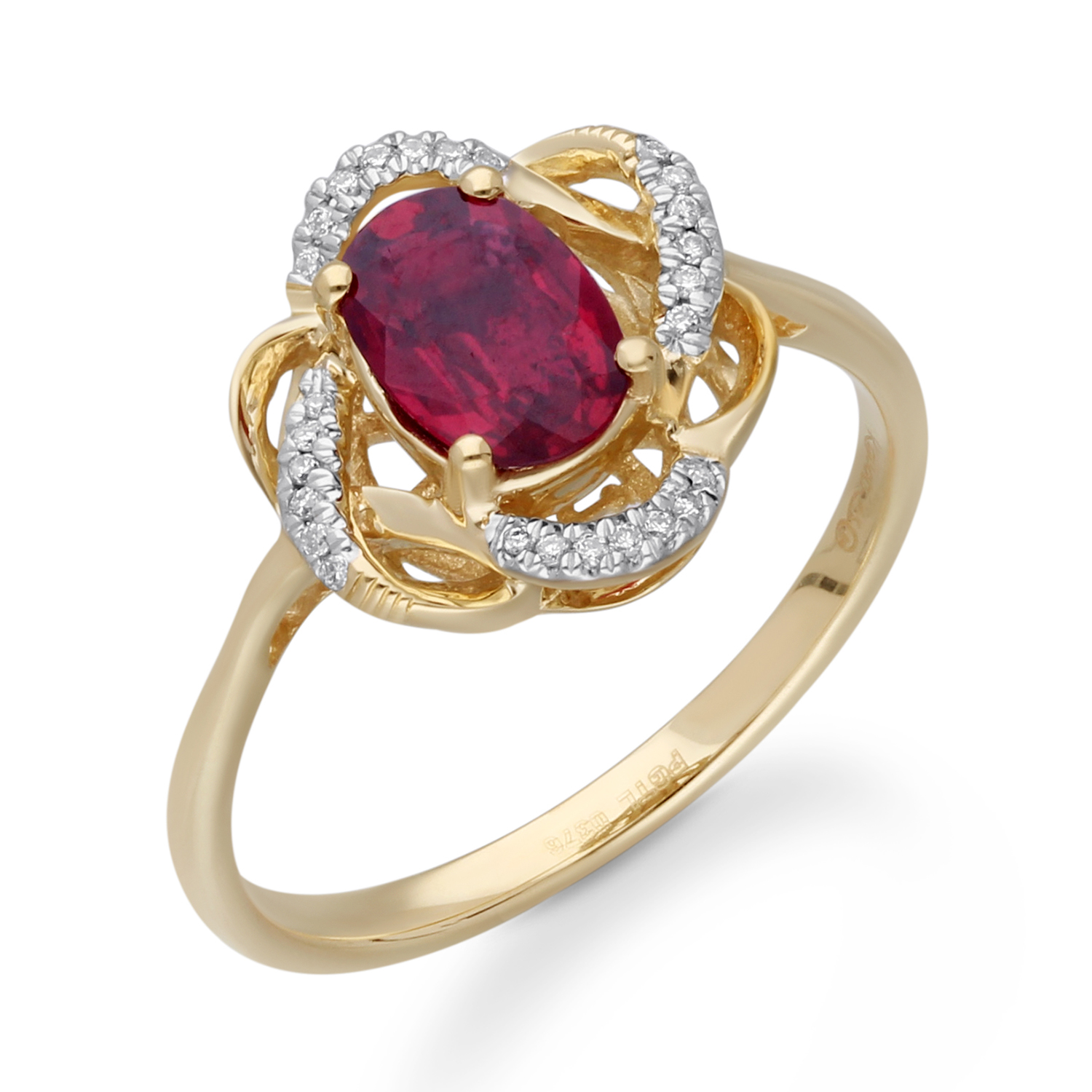 14K YELLOW GOLD GIA RUBY & WHITE DIAMOND
