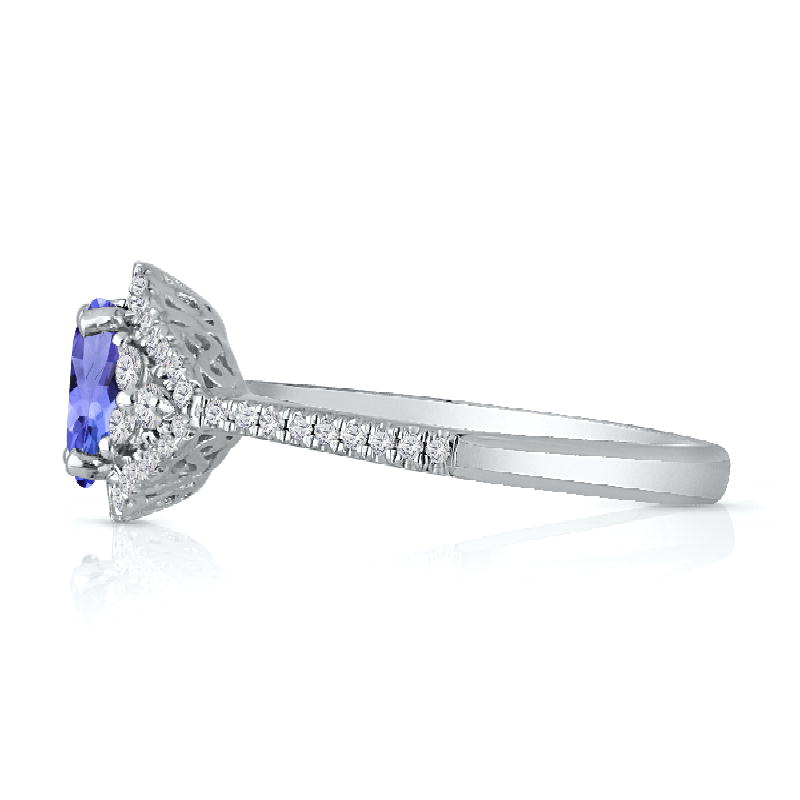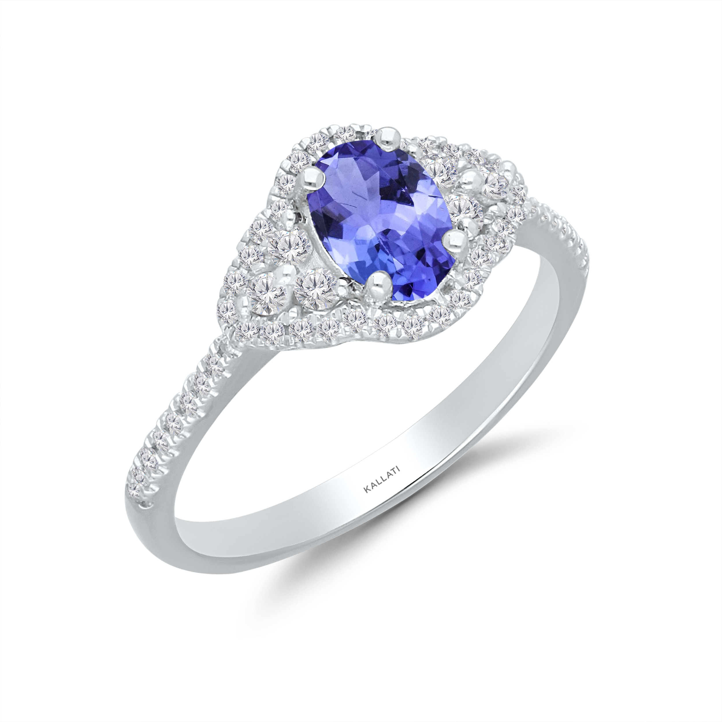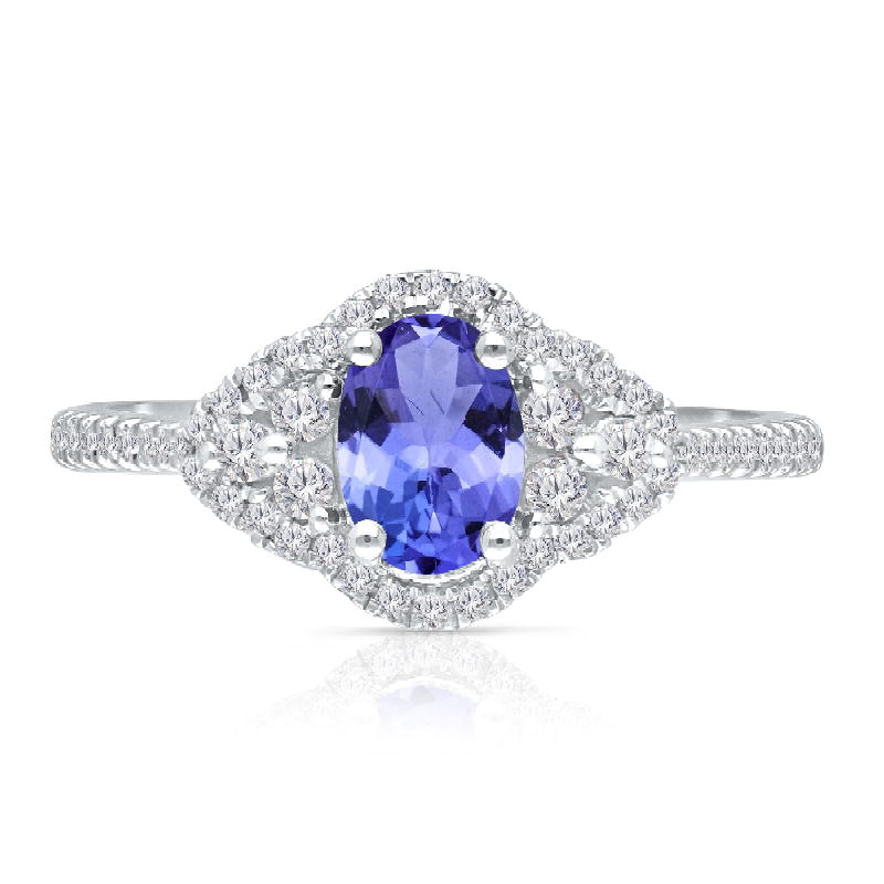 14K WHITE GOLD TANZANITE & WHITE DIAMOND FASHION RING