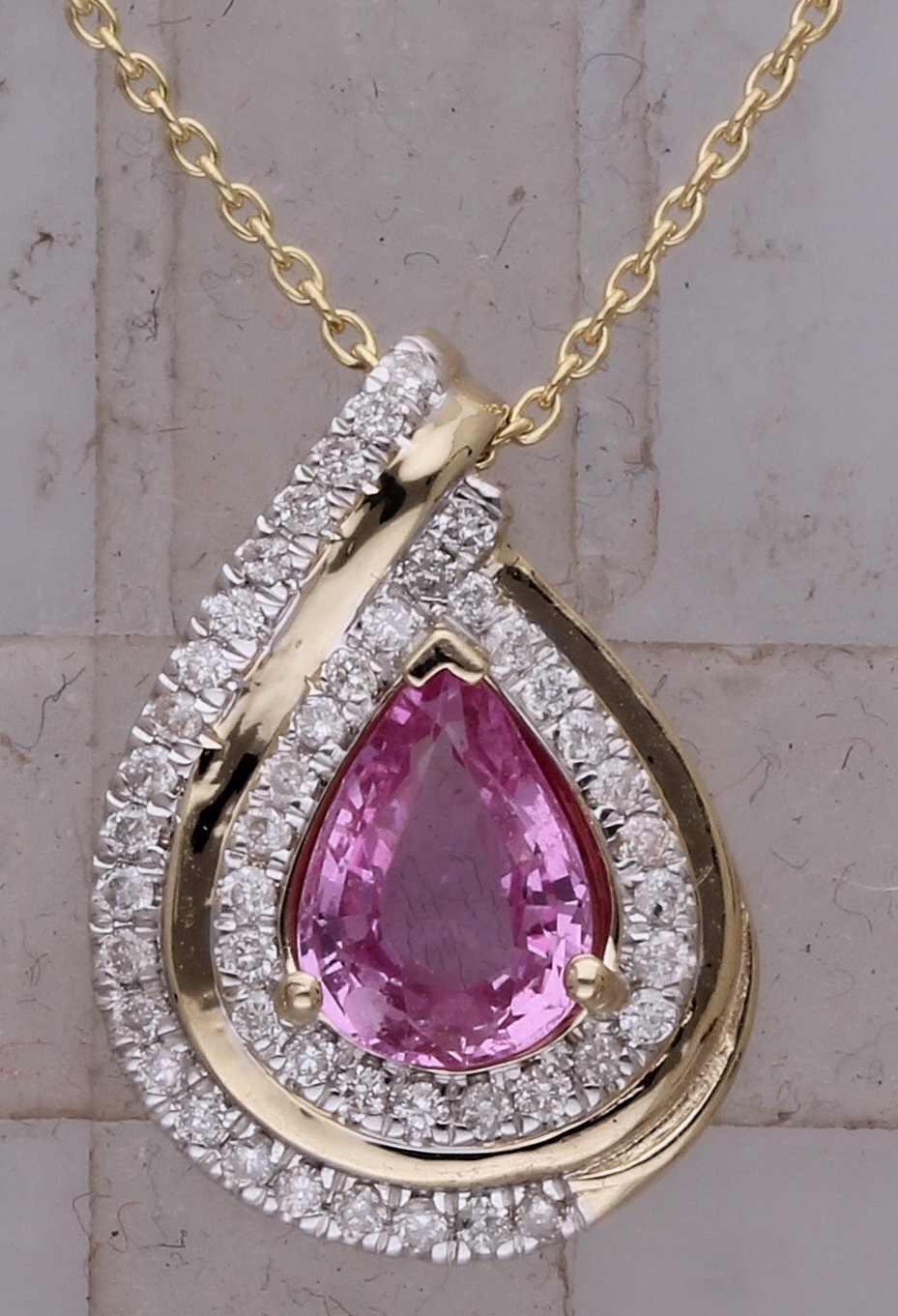 14K YELLOW GOLD MULTI SAPPHIRE WITH WHITE DIAMOND FASHION PENDANT