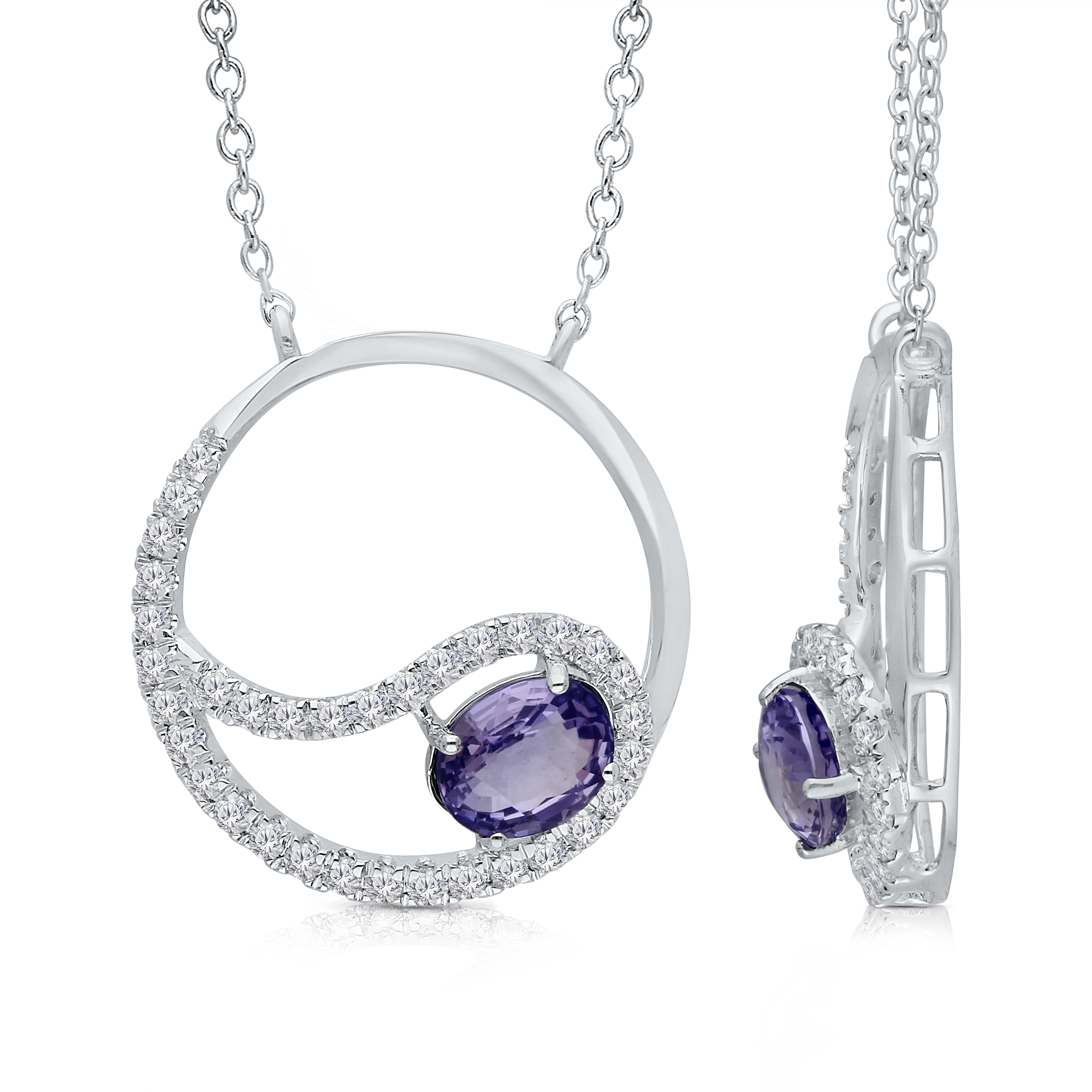 14K WHITE GOLD MULTI SAPPHIRE & WHITE DIAMOND FASHION PENDANT