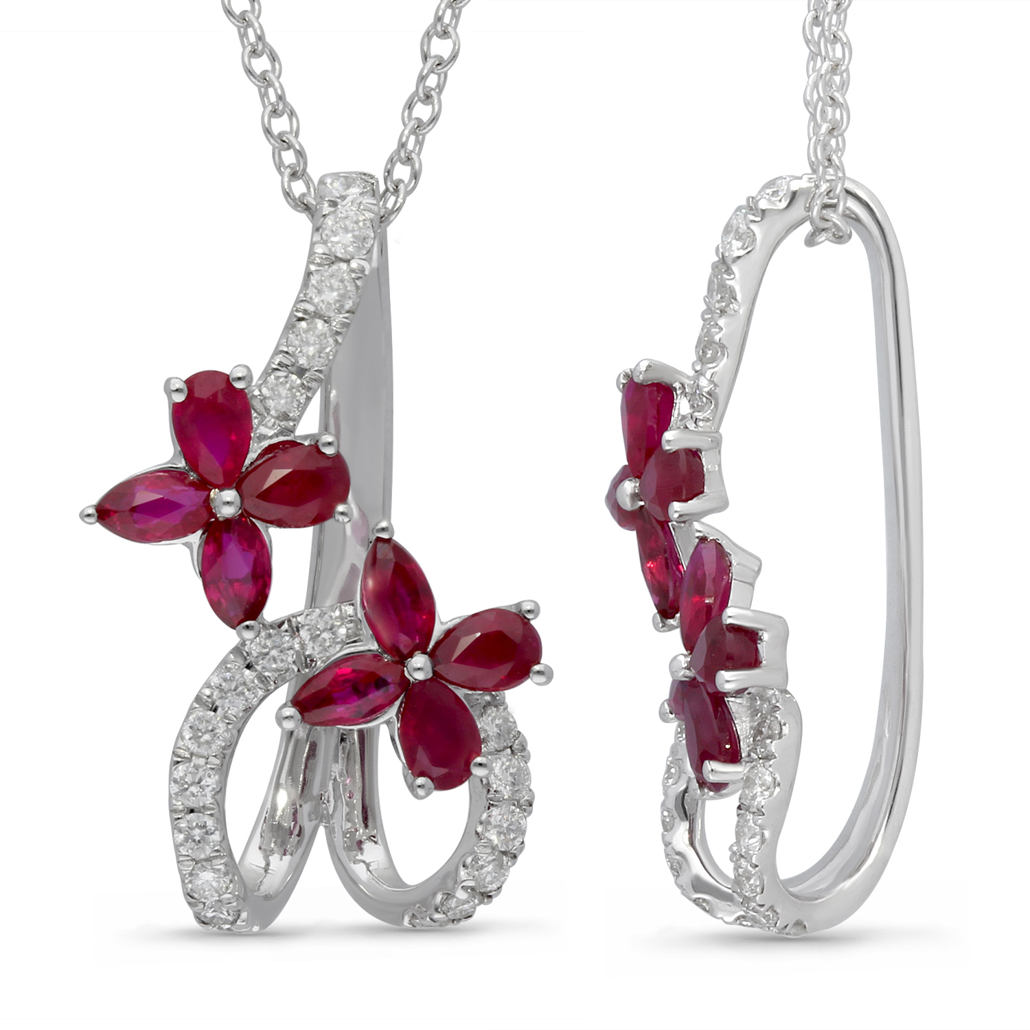 14K WHITE GOLD RUBY & DIA FASHION PENDA
