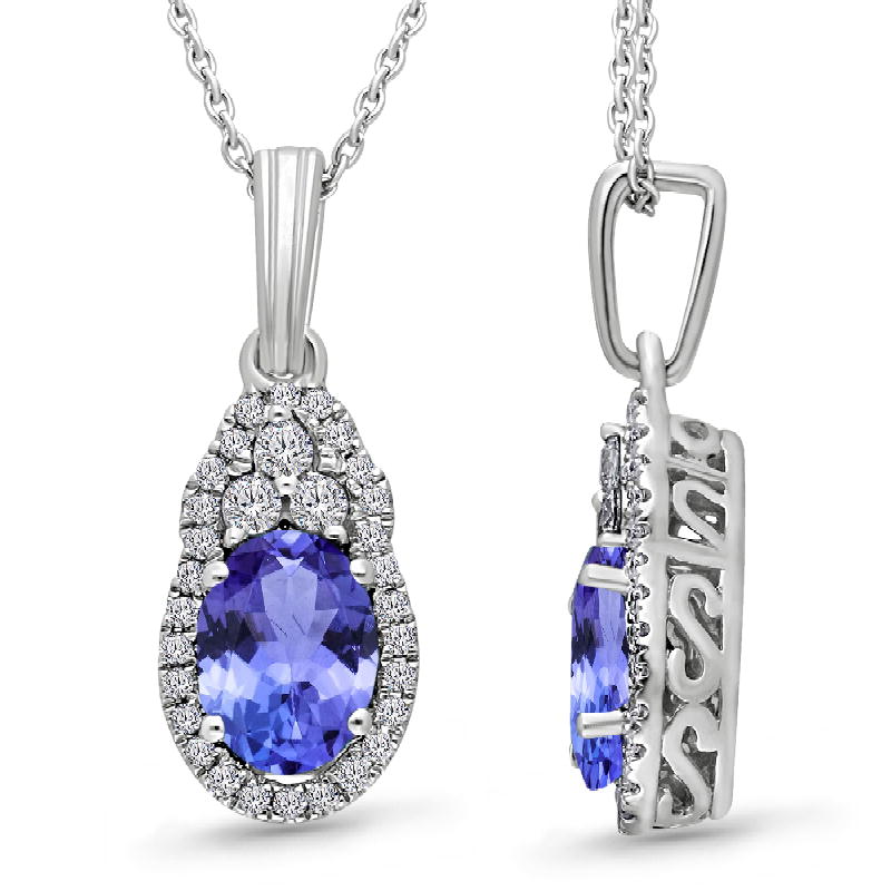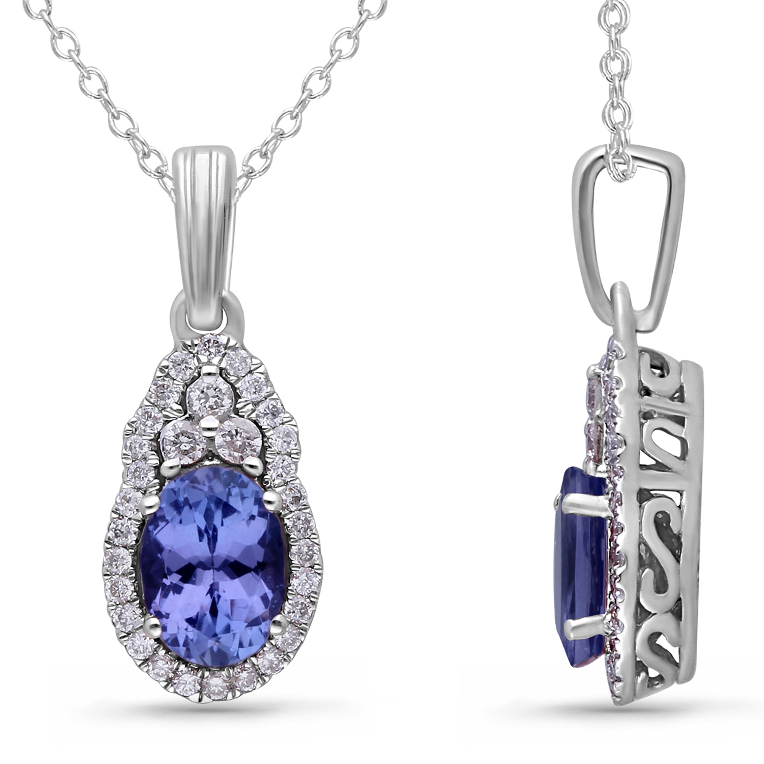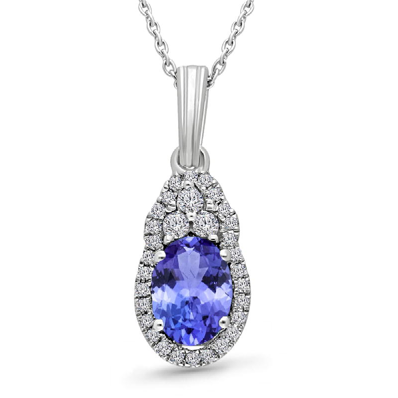 14K WHITE GOLD TANZANITE & WHITE DIAMOND