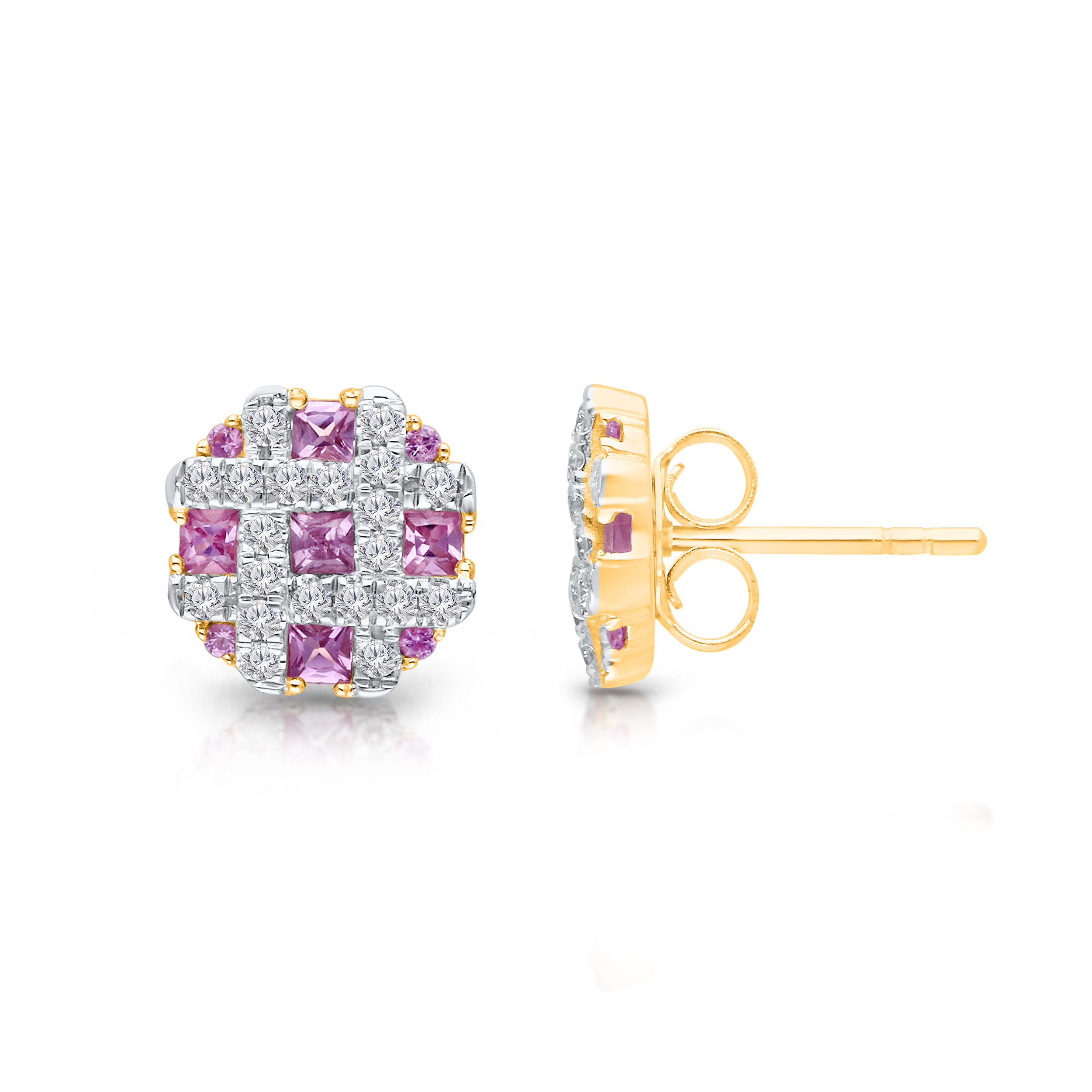 14K YELLOW GOLD MULTI SAPPHIRE WITH WHITE DIAMOND FASHION EARRING