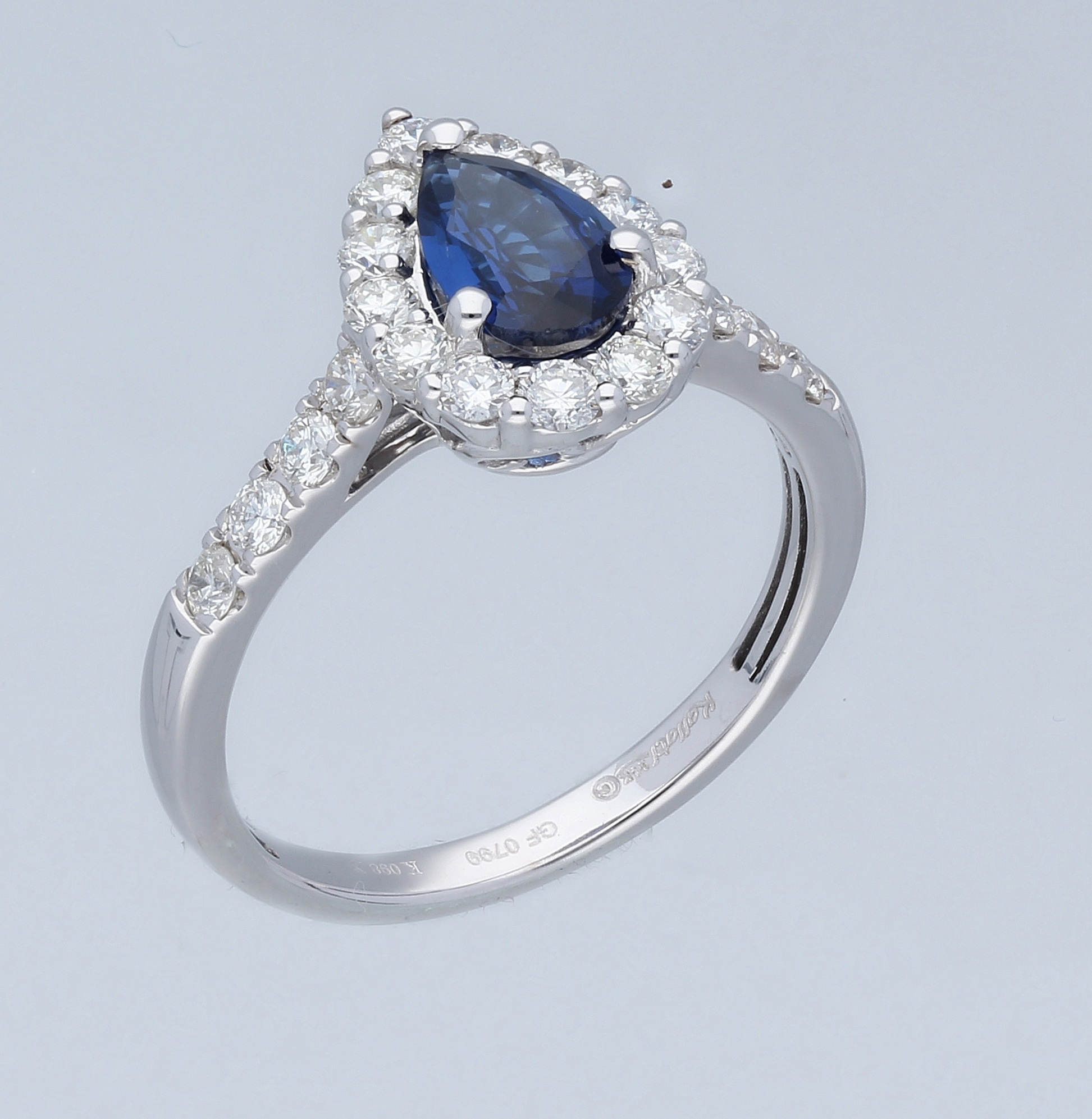 14K WHITE GOLD SI CEYLON SAPPHIRE DIA RI