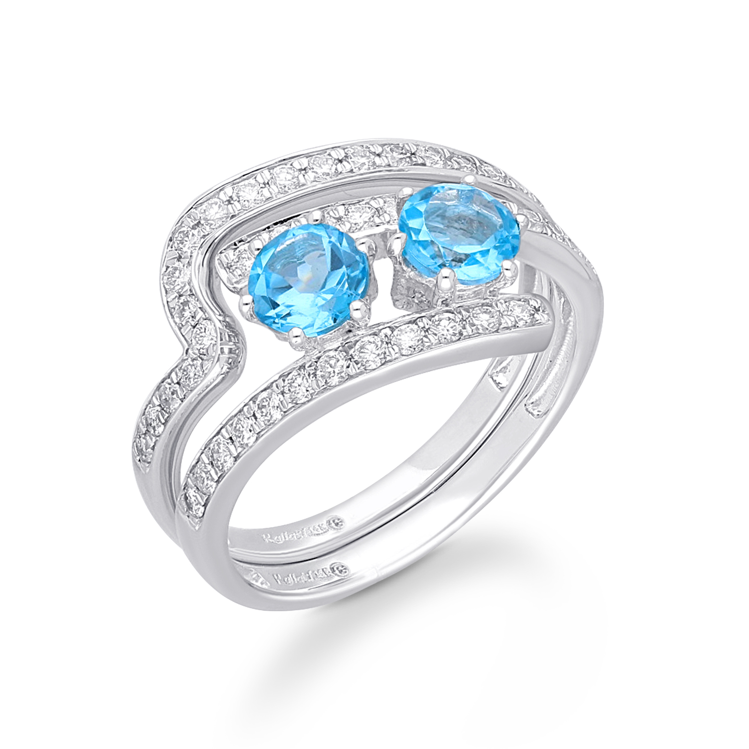 14K WHITE GOLD BLUE TOPAZ DIA BAND RING