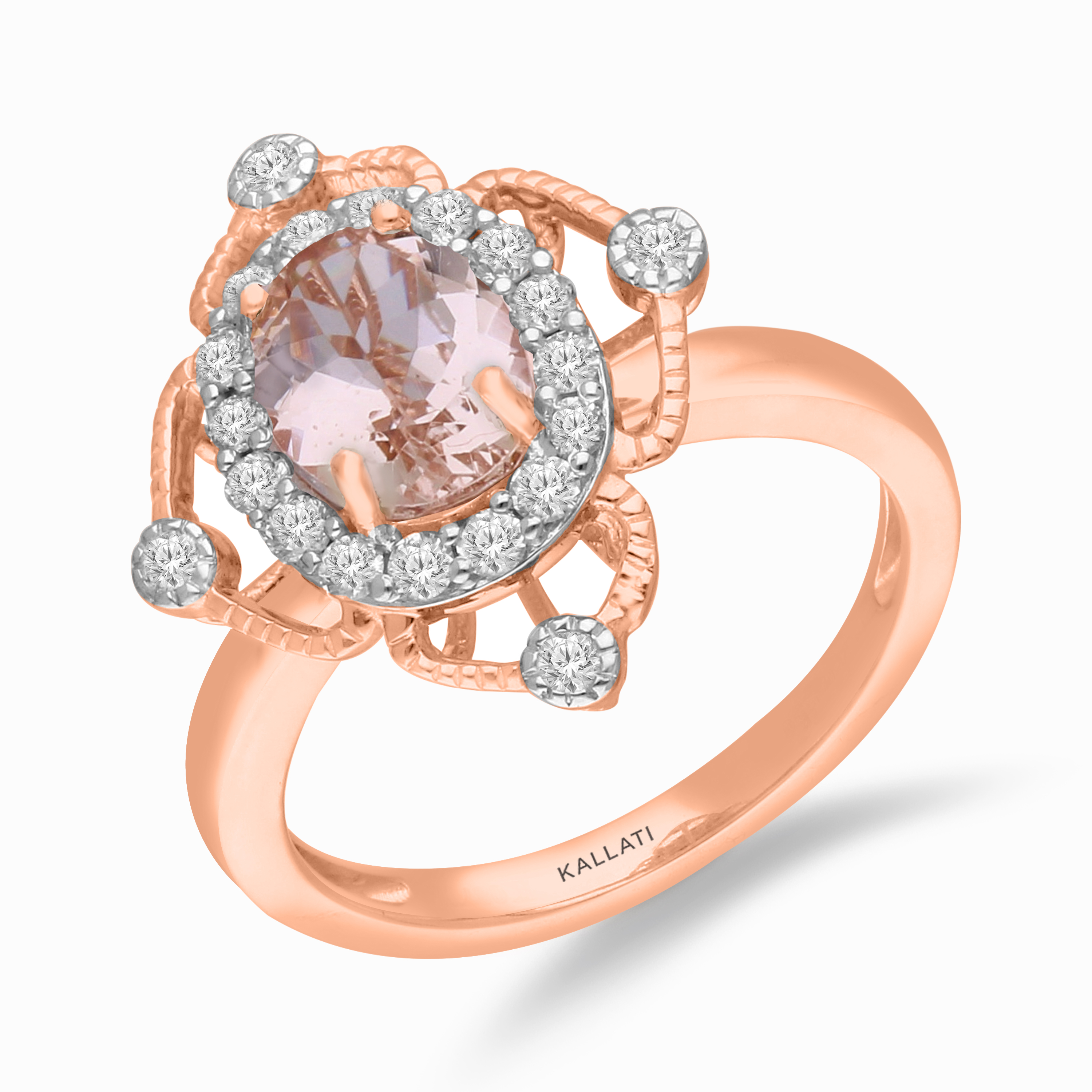 14K PINK GOLD OPAL AND WHITE DIAMOND FASHION RING