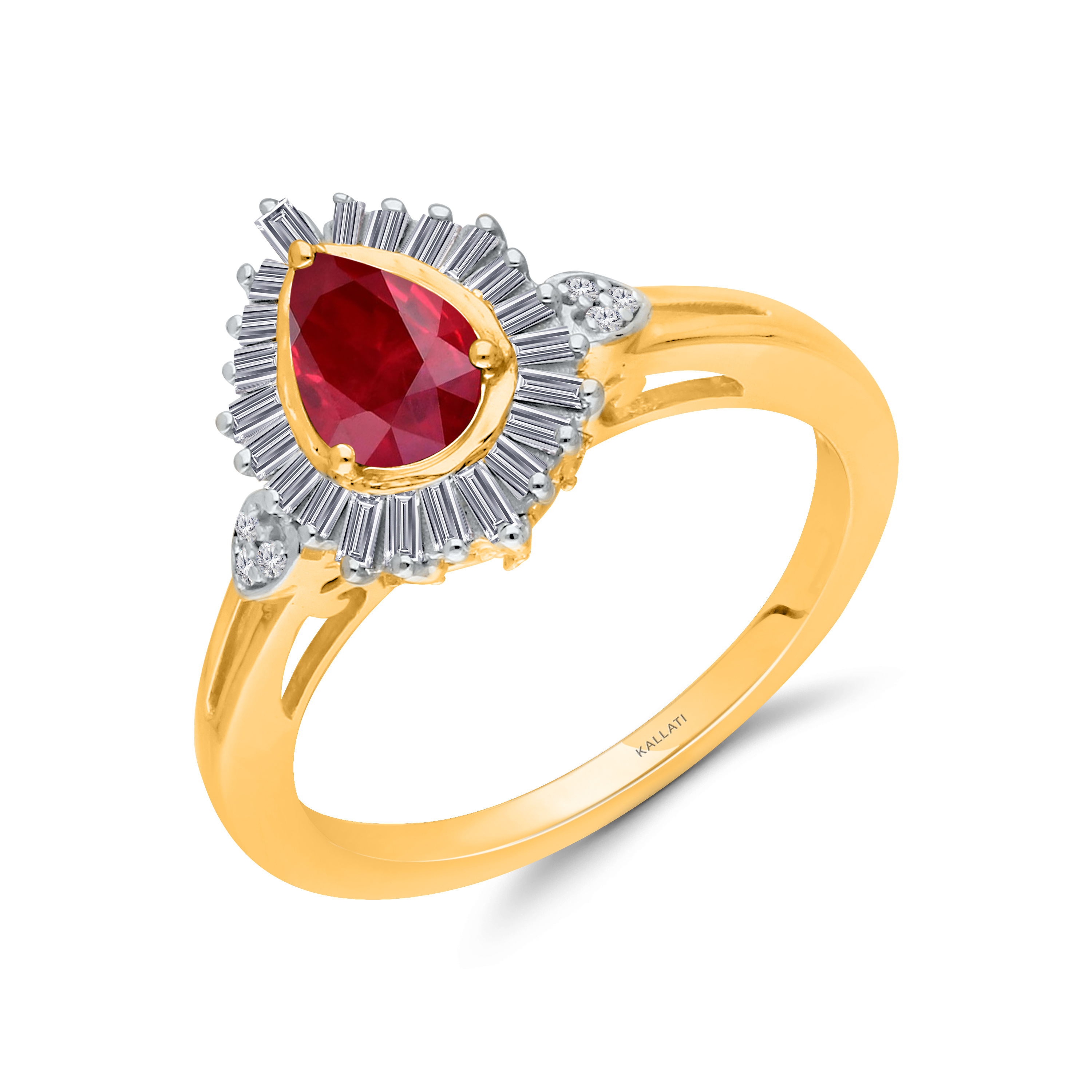 14K YELLOW GOLD RUBY WITH WHITE DIAMOND FASHION RING