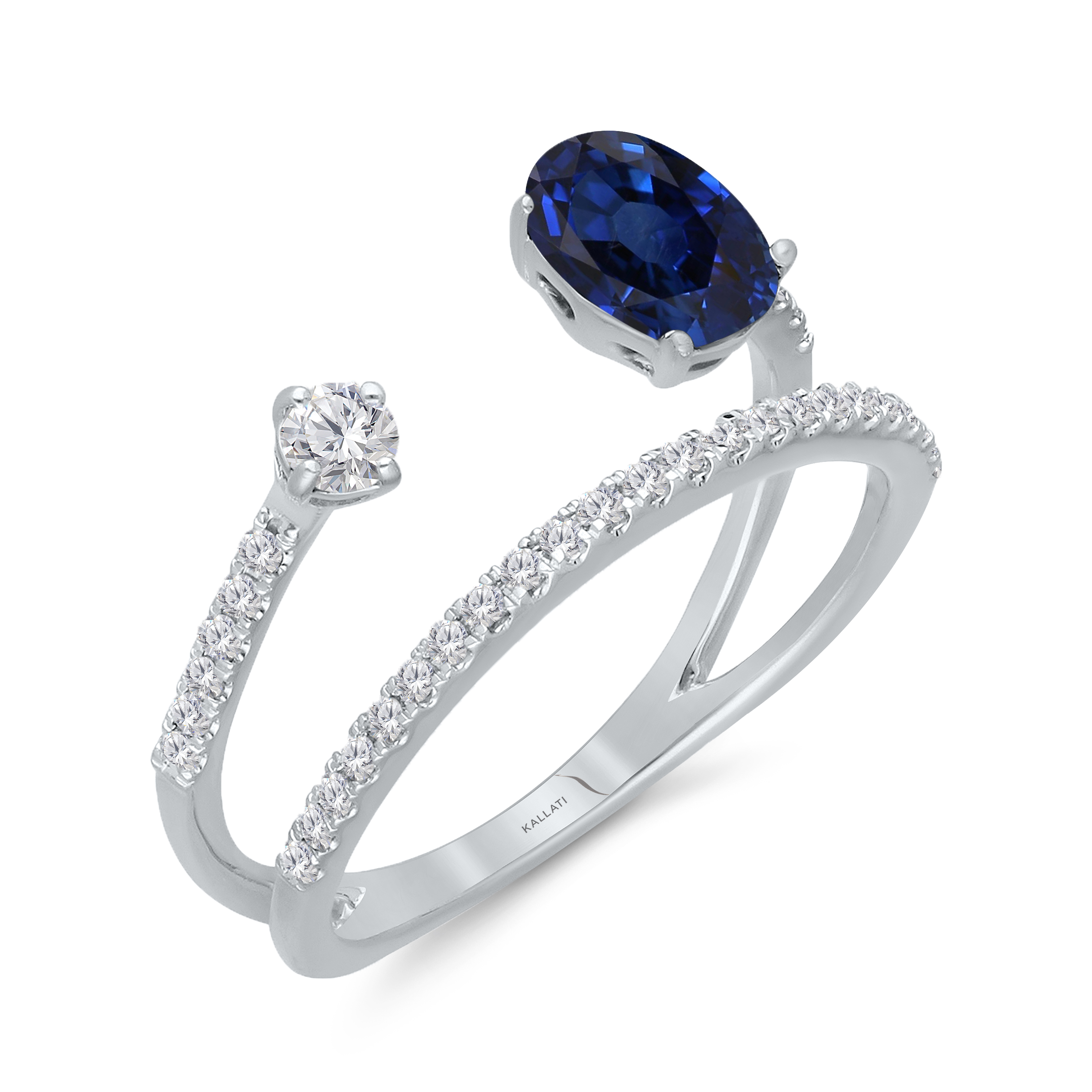 14K YELLOW GOLD TEAL SAPPHIRE WITH WHITE DAIMOND FASHION RING