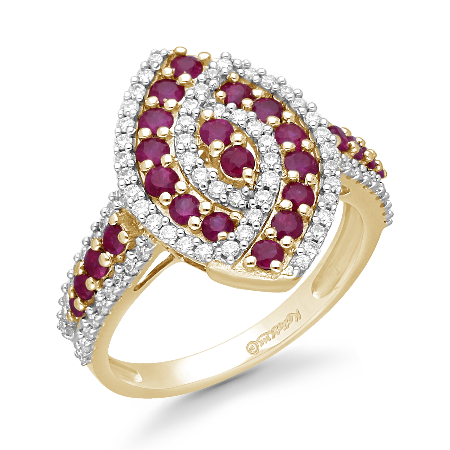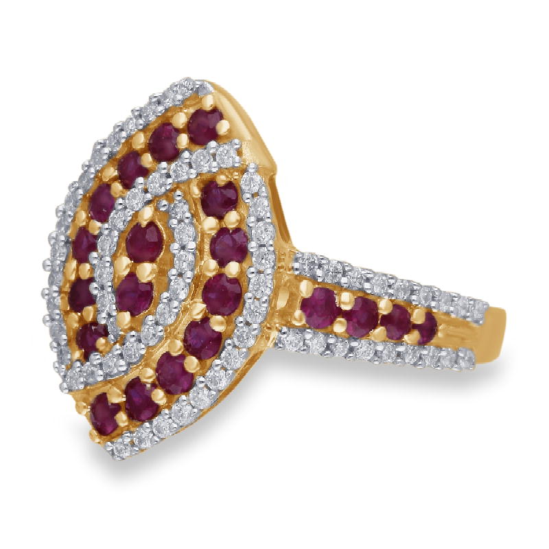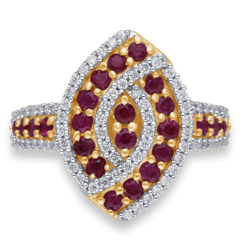 14K YELLOW GOLD RUBY & WHITE DIAMOND RIN