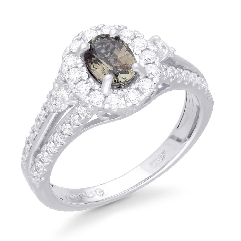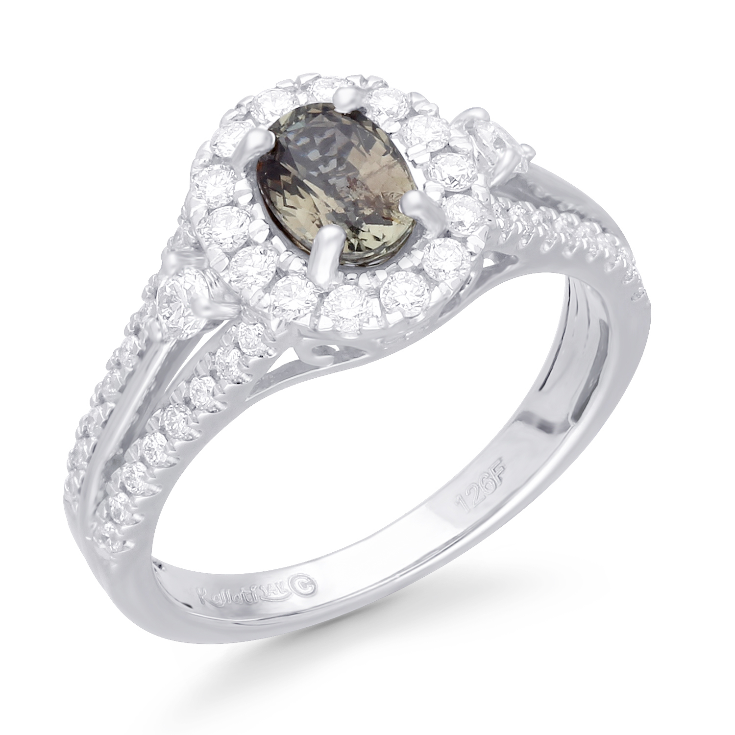 14K WHITE GOLD ALEXANDRITE & WHITE DIAMO