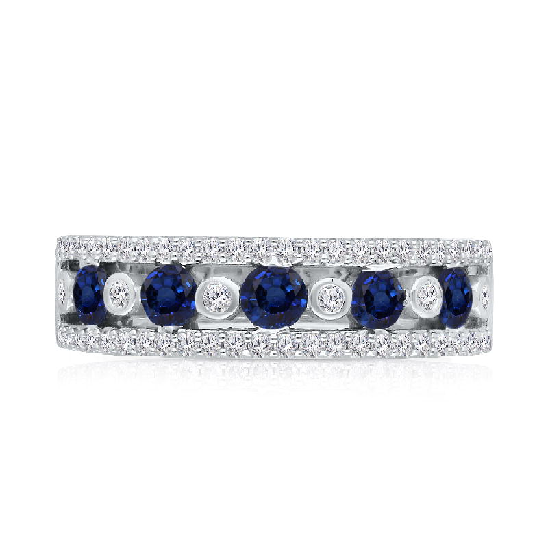 14K WHITE GOLD WITH SAPPHIRE DIAMOND RIN