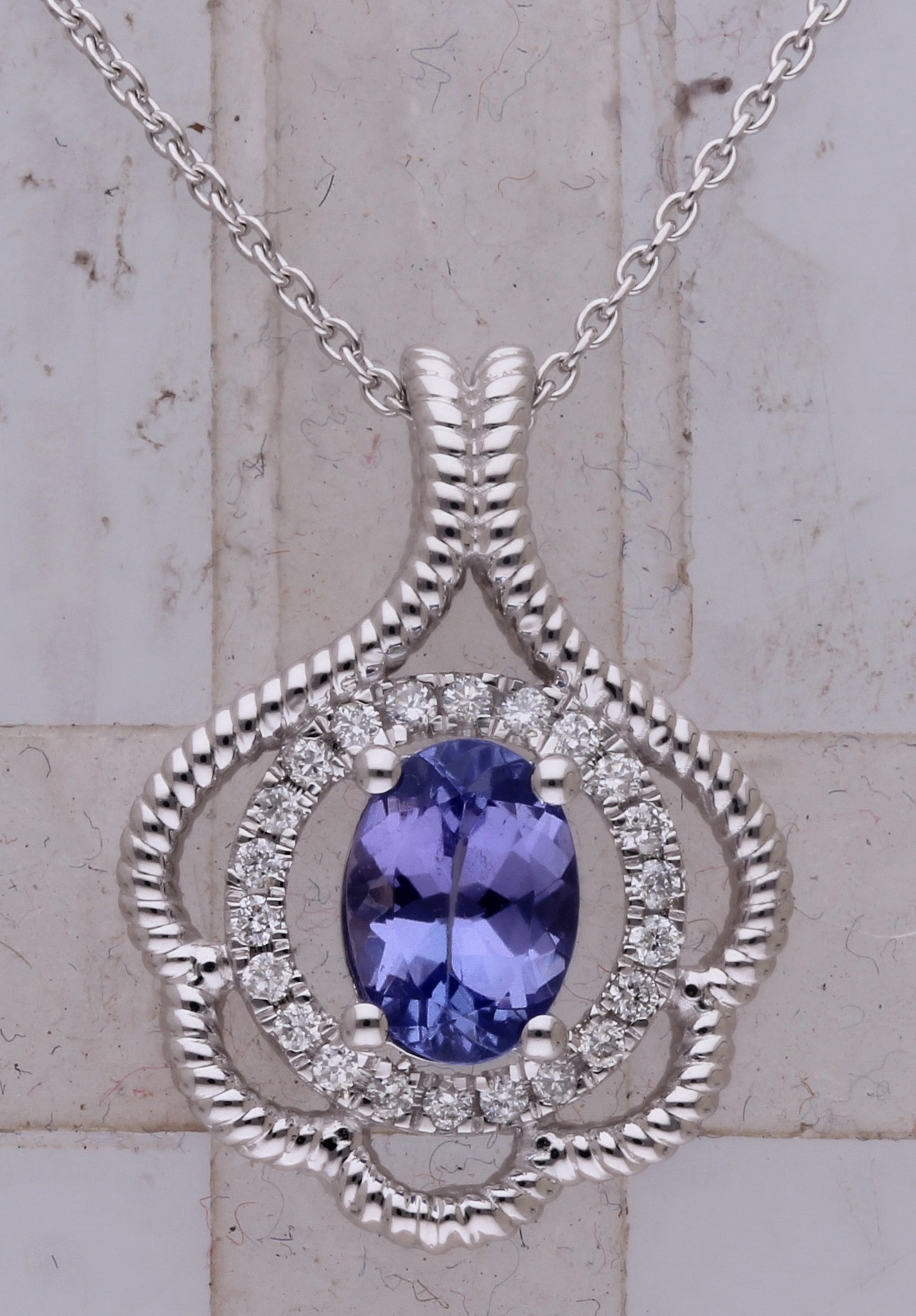 14K WHITE GOLD TANZANITE WITH WHITE DIAMOND FASHION PENDANT