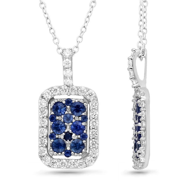14K WHITE GOLD SAPPHIRE & WHITE DIA PEND