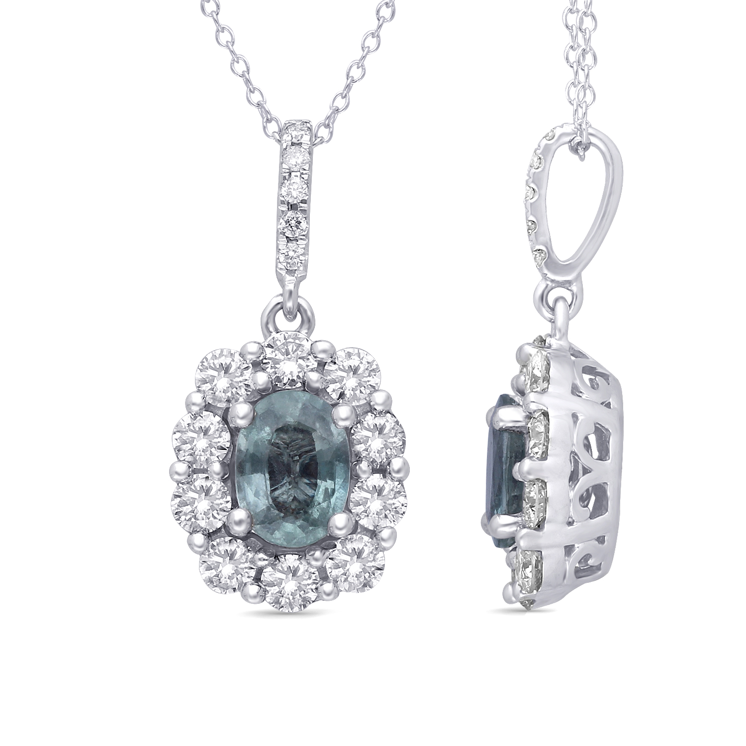 14K WHITE GOLD GIA MULTI SAPPHIRE DIAMON
