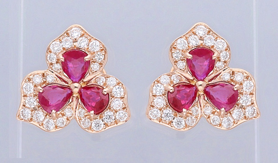 14K YELLOW GOLD RUBY & WHITE DIAMOND FASHION EARRING