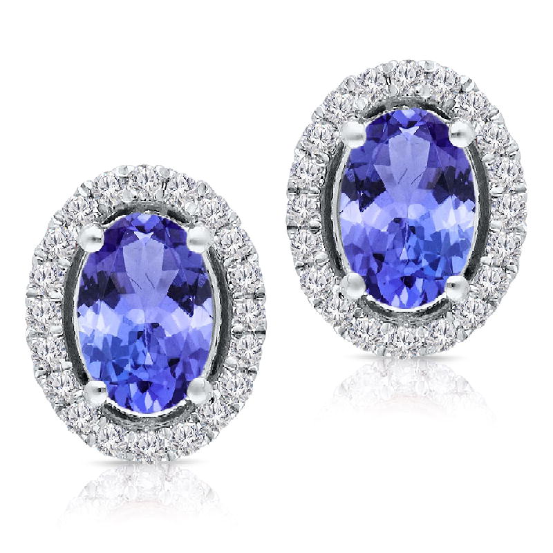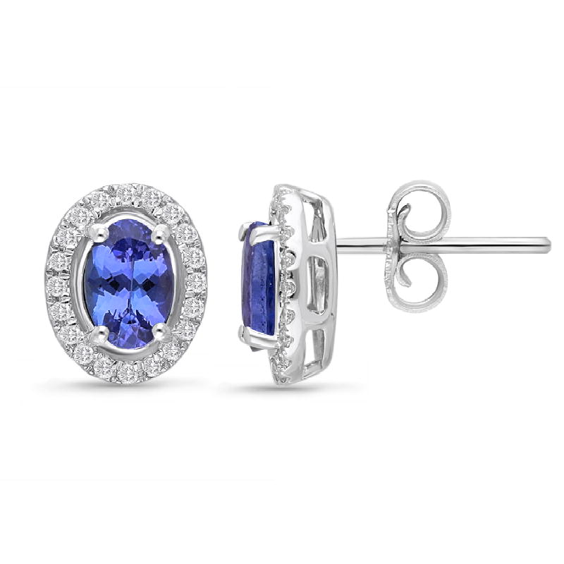 14K WHITE GOLD OVEL TANZANITE DIA EARRI