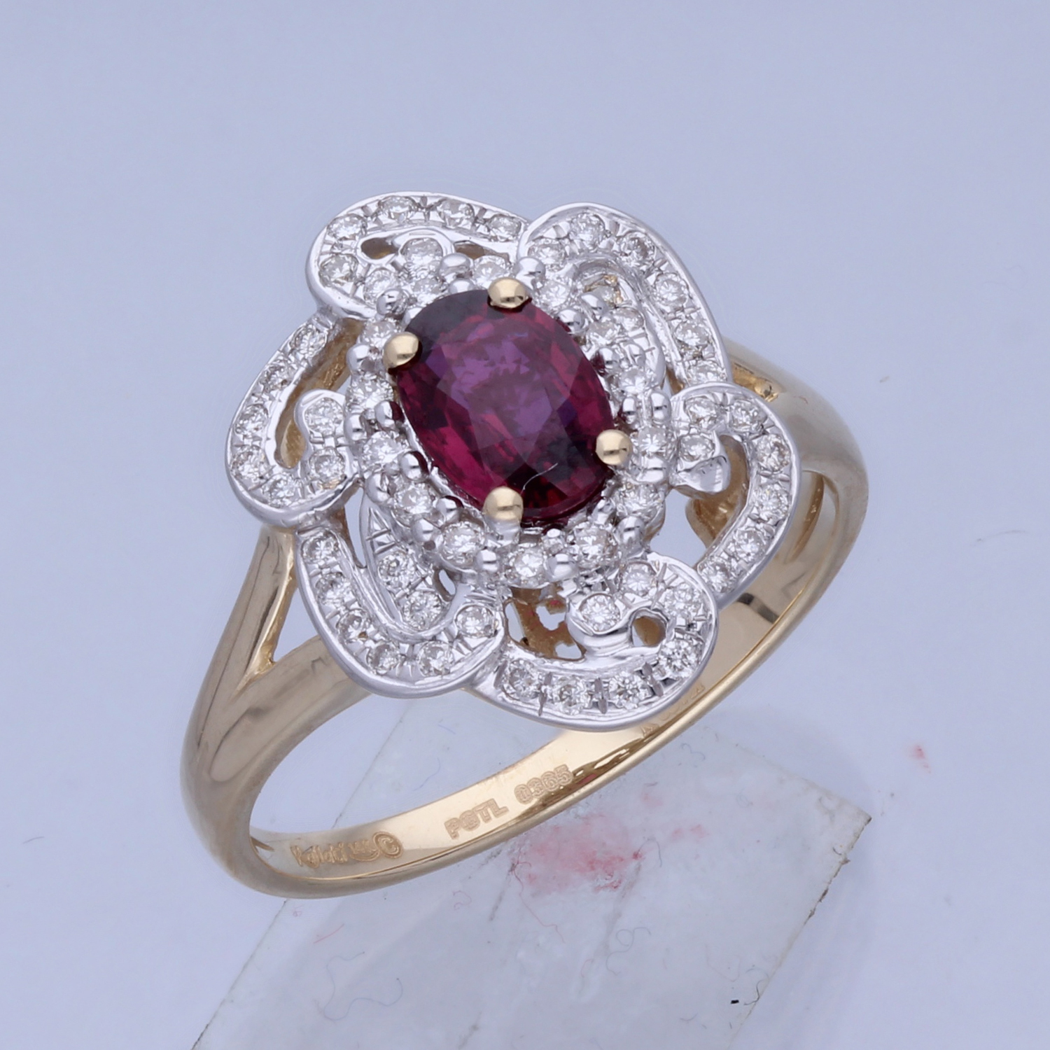 14K YELLOW GOLD GIA RUBY & WHITE DIAMOND