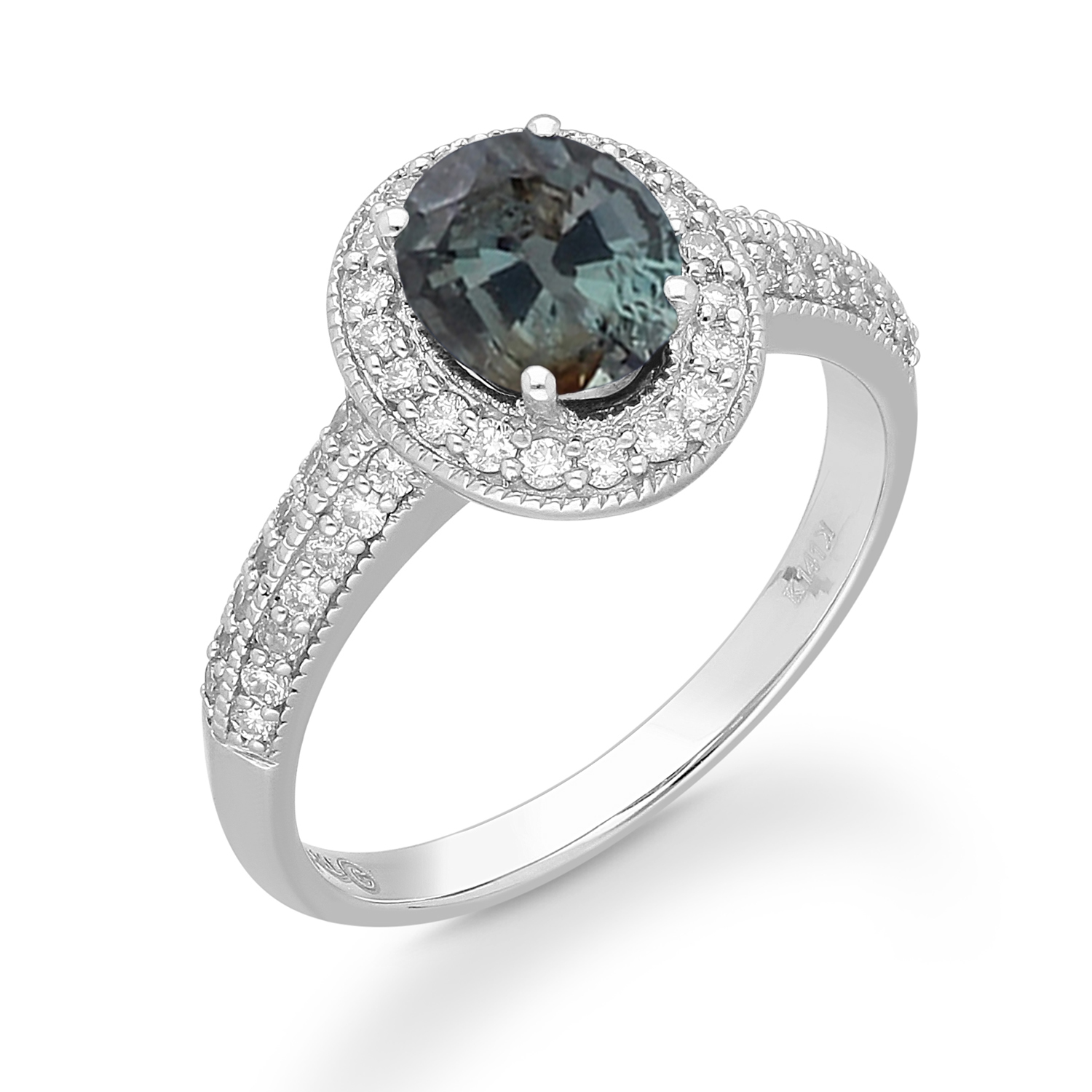 14K WHITE GOLD EMERALD & WHITE DIAMOND FASHION RING