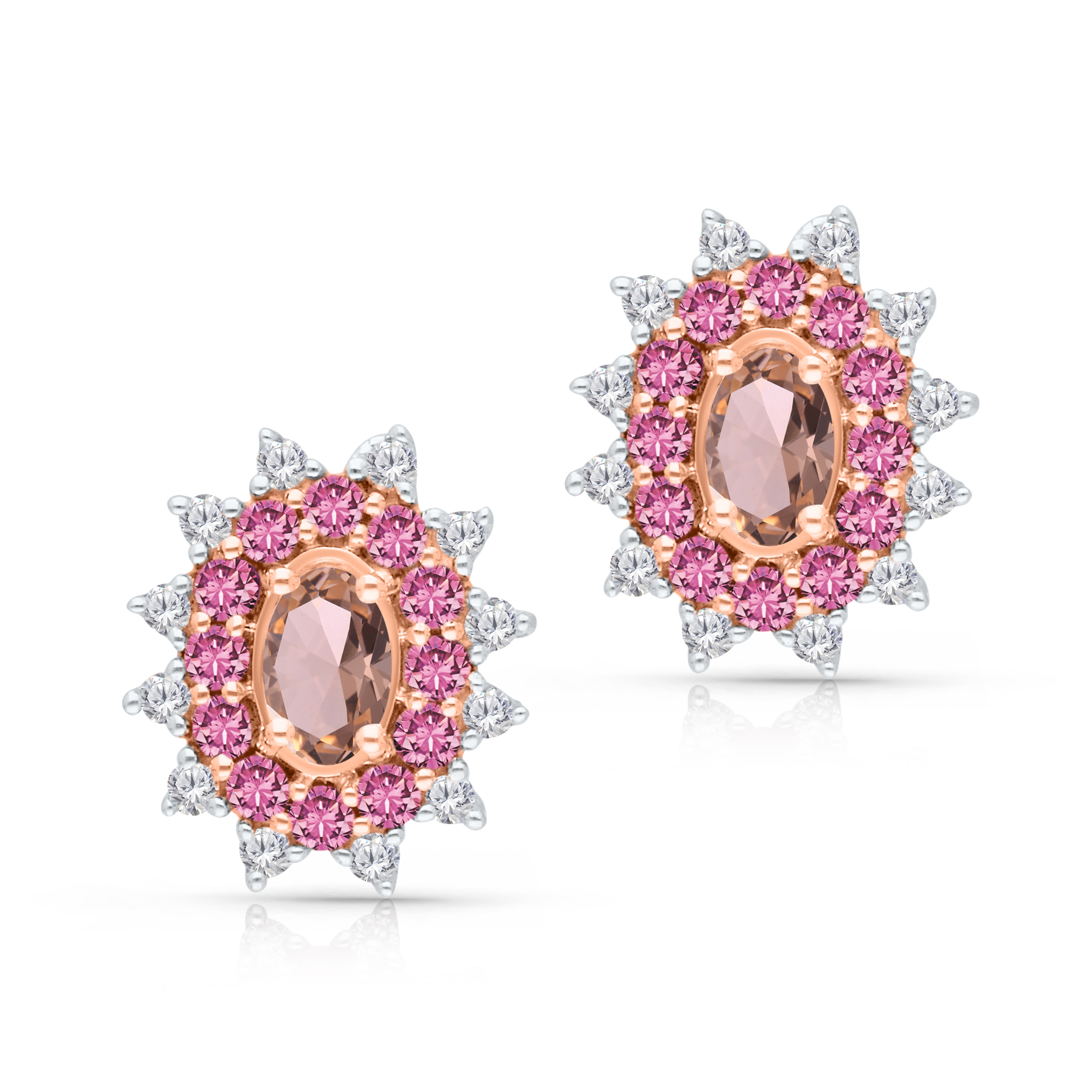 14K YELLOW GOLD PINK SAPPHIRE WITH WHITE DIAMOND FASHION EARRINGS