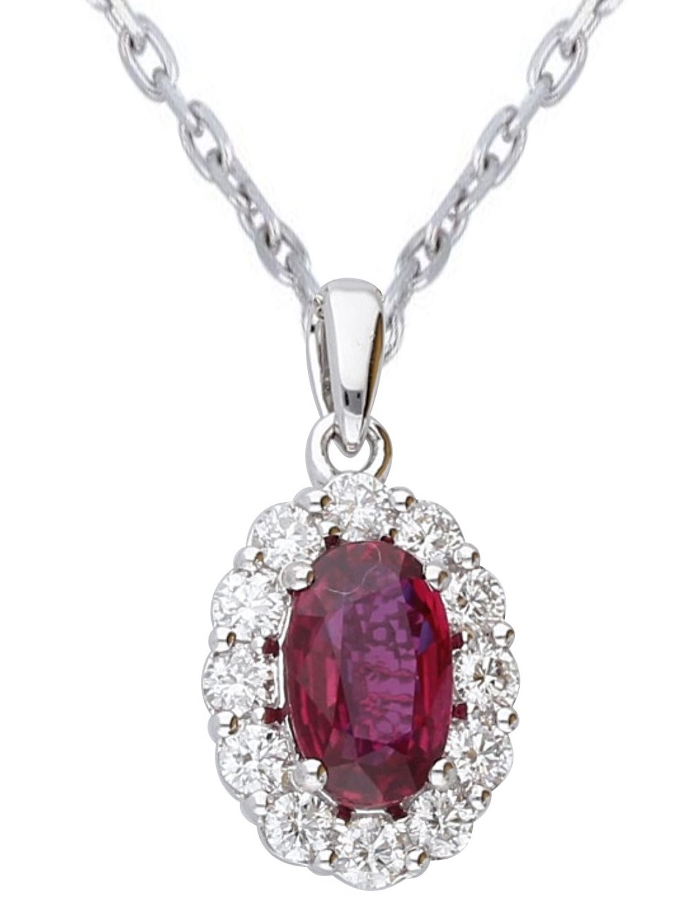 14K WHITE GOLD SI GIA RUBY DIAMOND PENDA