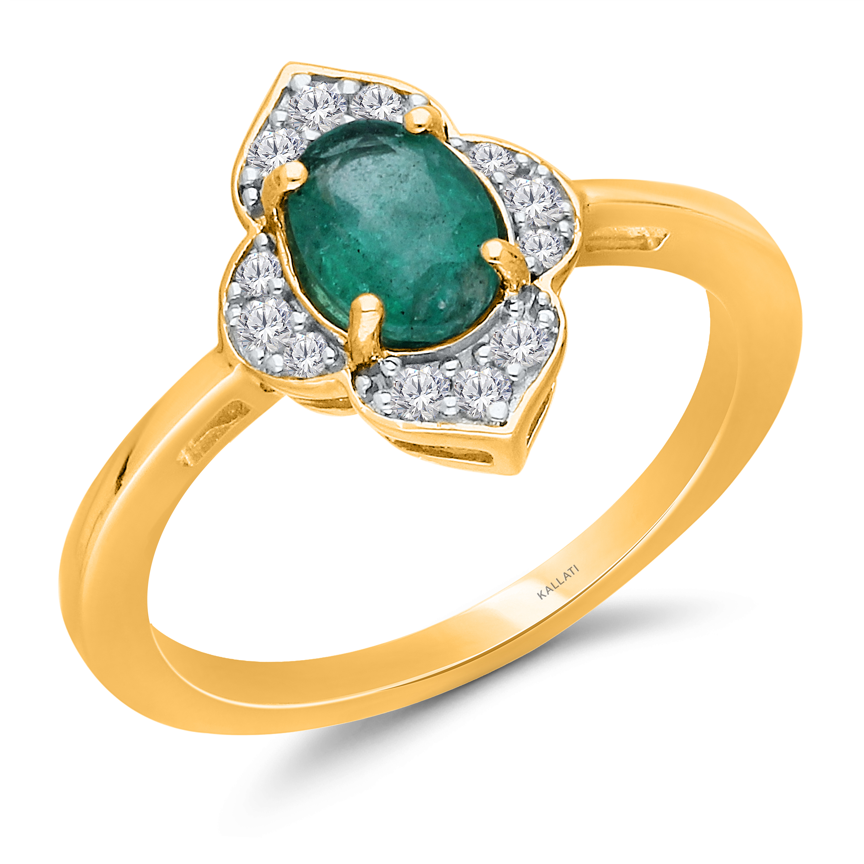 14 K YELLOW GOLD EMERALD & WHITE DIAMOND FASHION RING