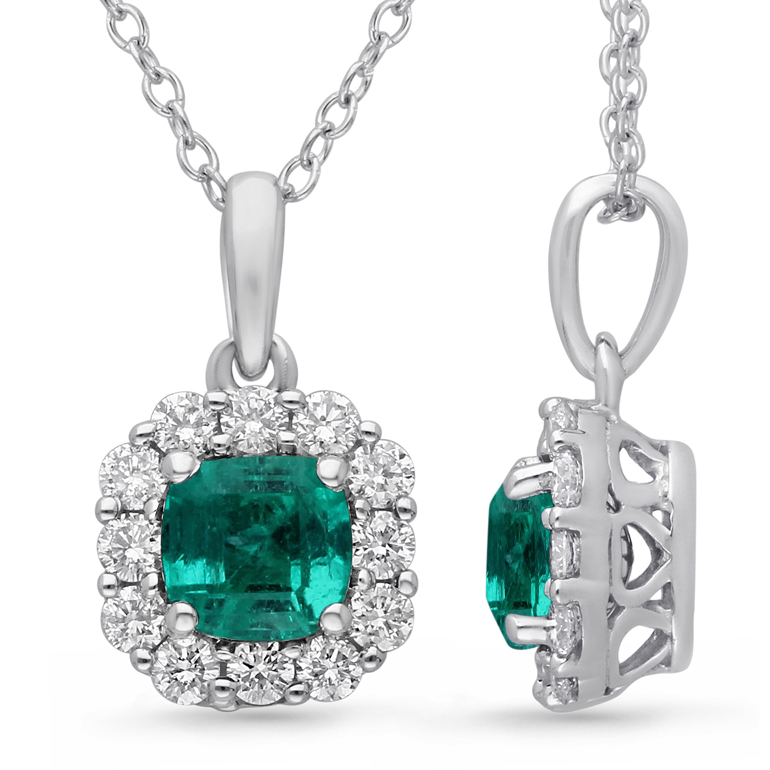 14K WHITE GOLD COLUMBIA EMERALD & WHITE