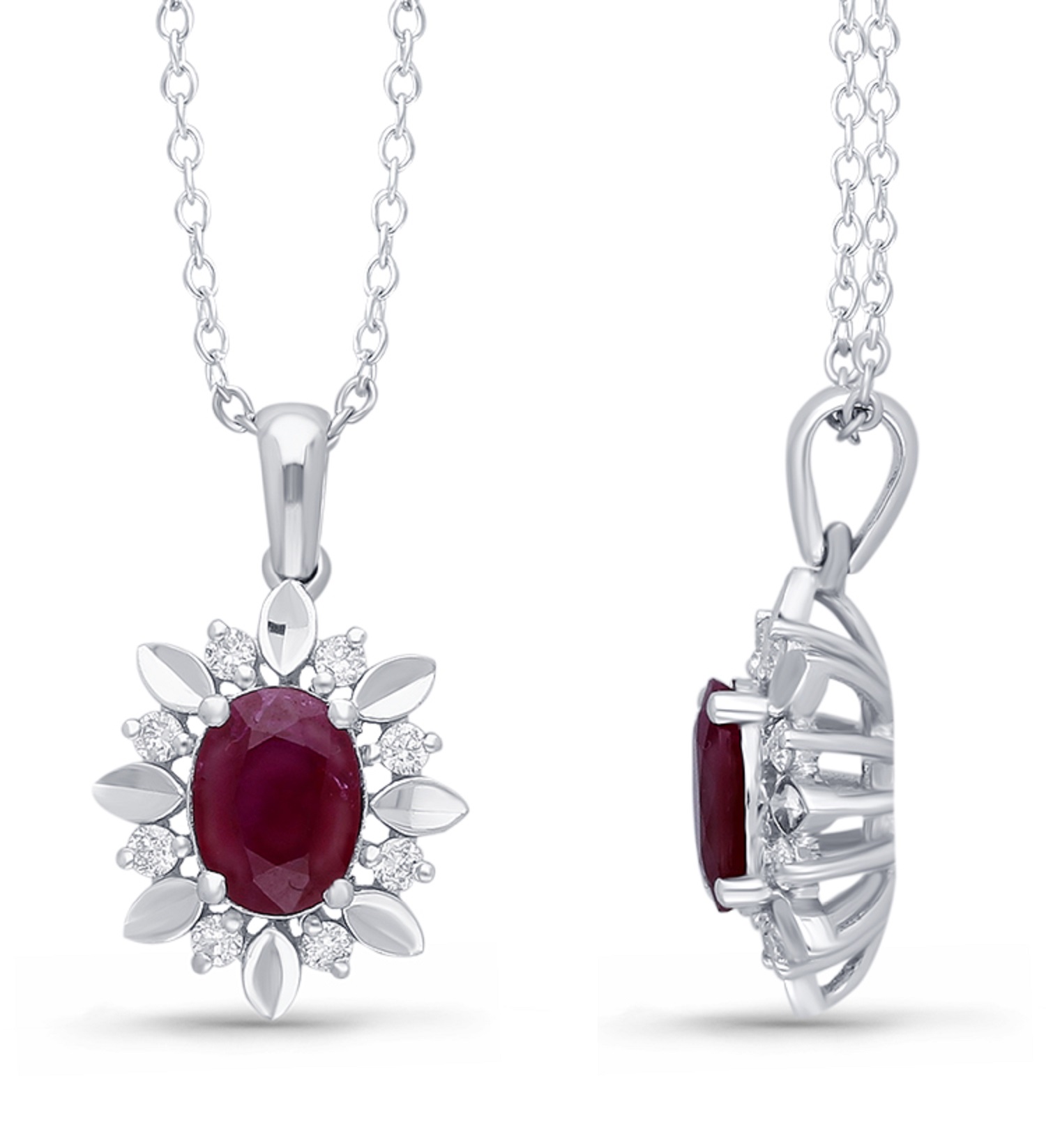 14K WHITE GOLD WITH RUBY & WHITE DIAMOND FASHION PENDANT